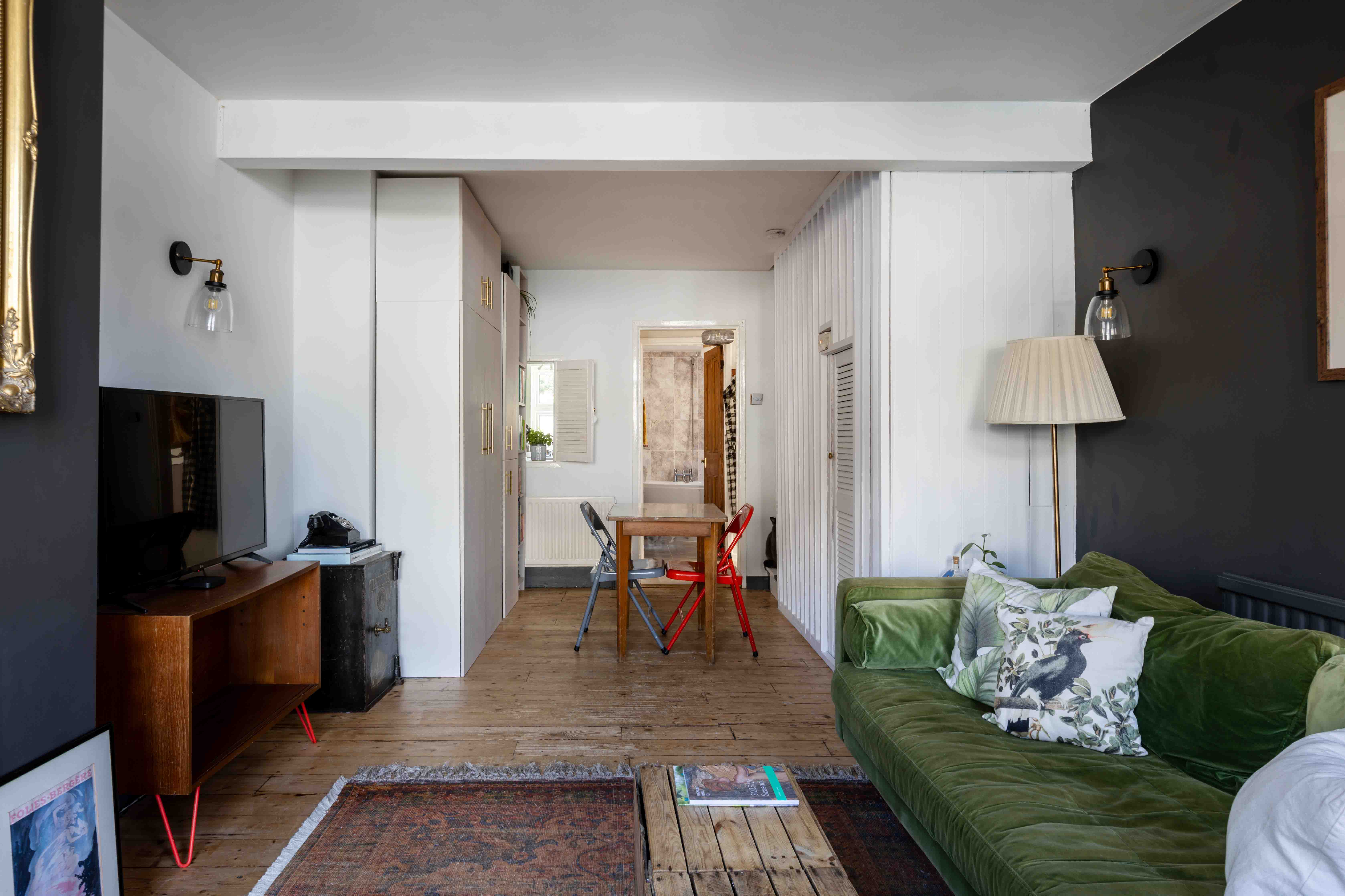 Upstairs, the character continues. The principal bedroom at the front of the house is a delightfully bright double, its windows inviting in the morning sun. The second bedroom, currently curated as a dressing room and office, features built-in wardrobes, offering a practical and stylish storage solution.
