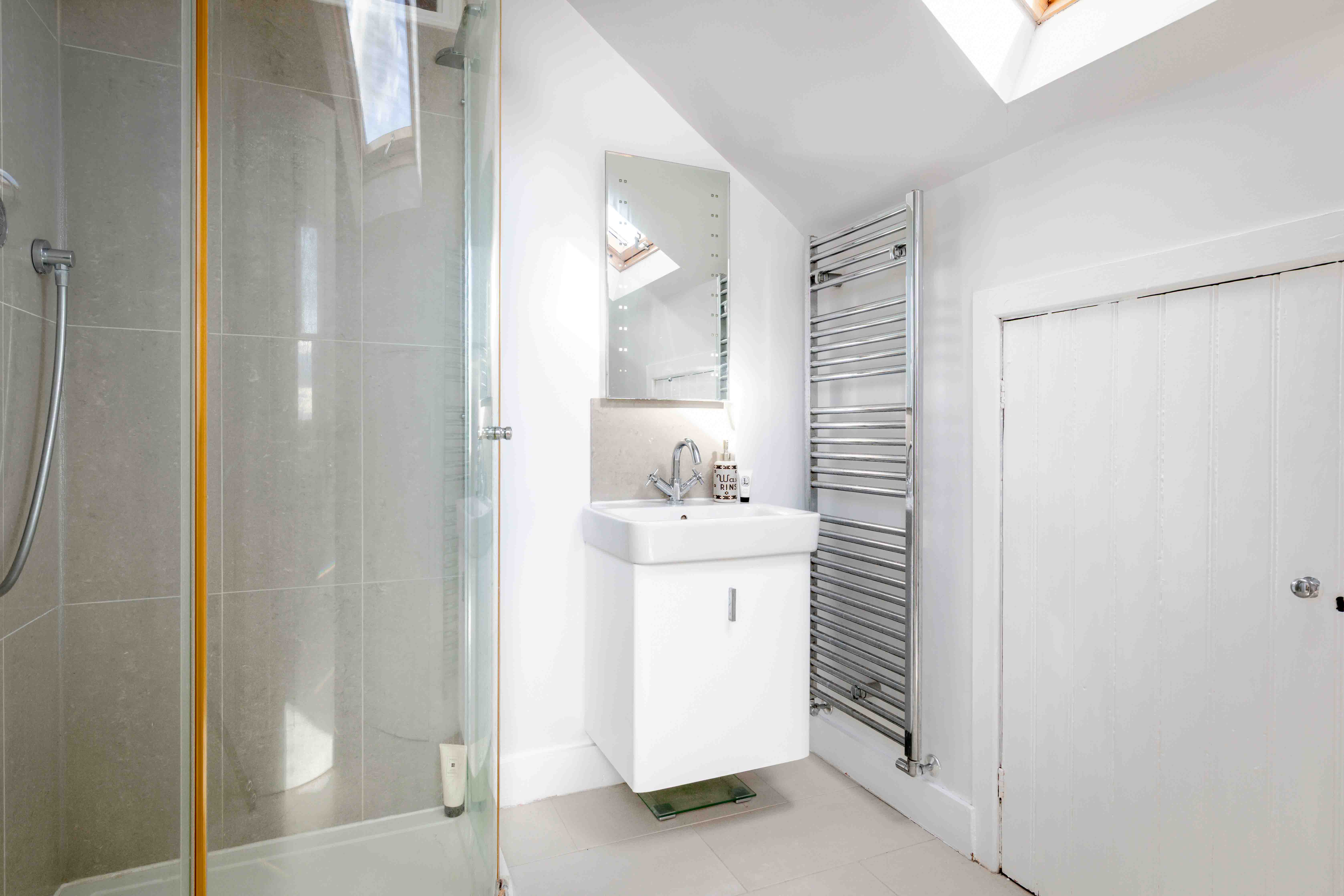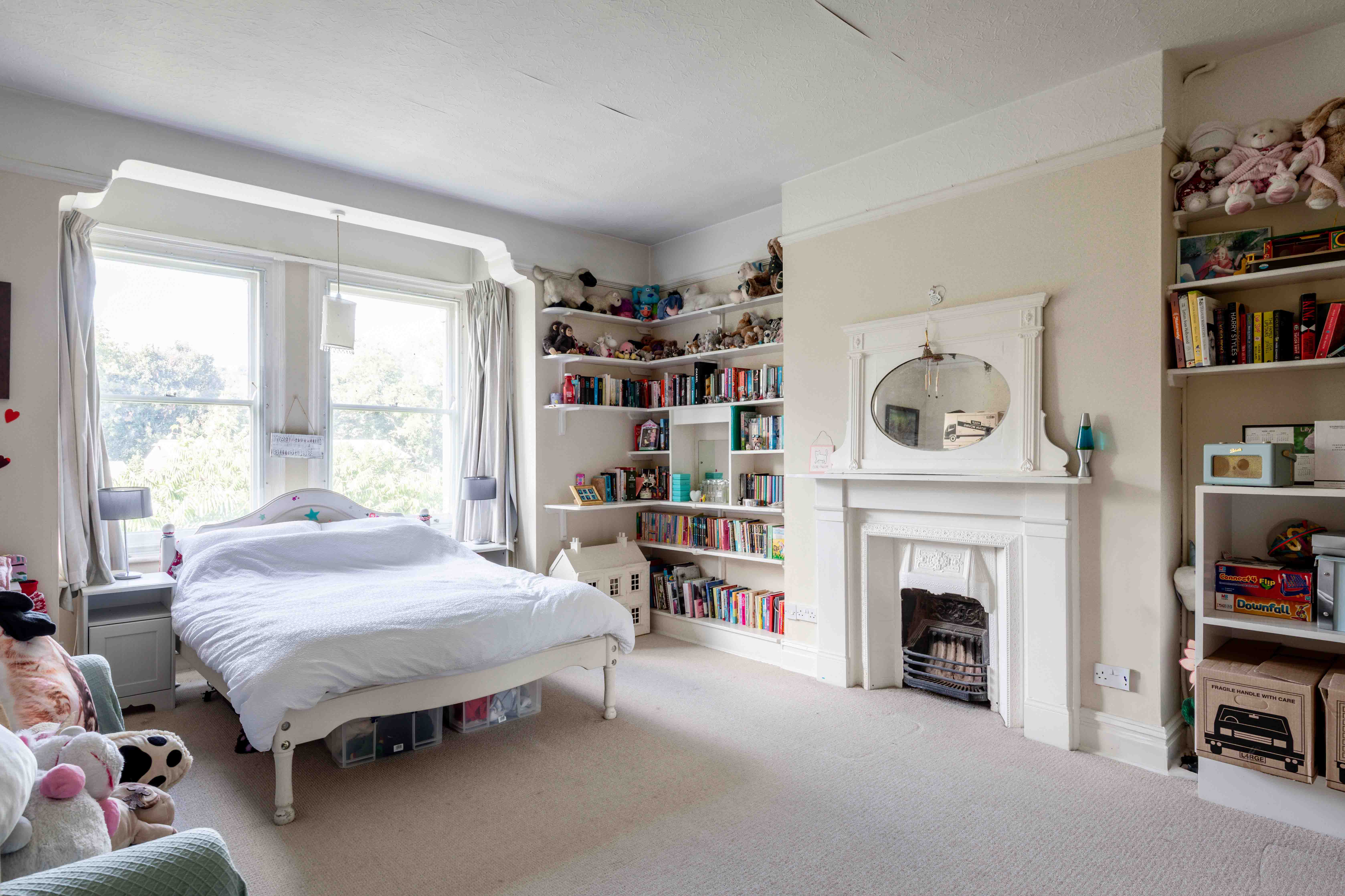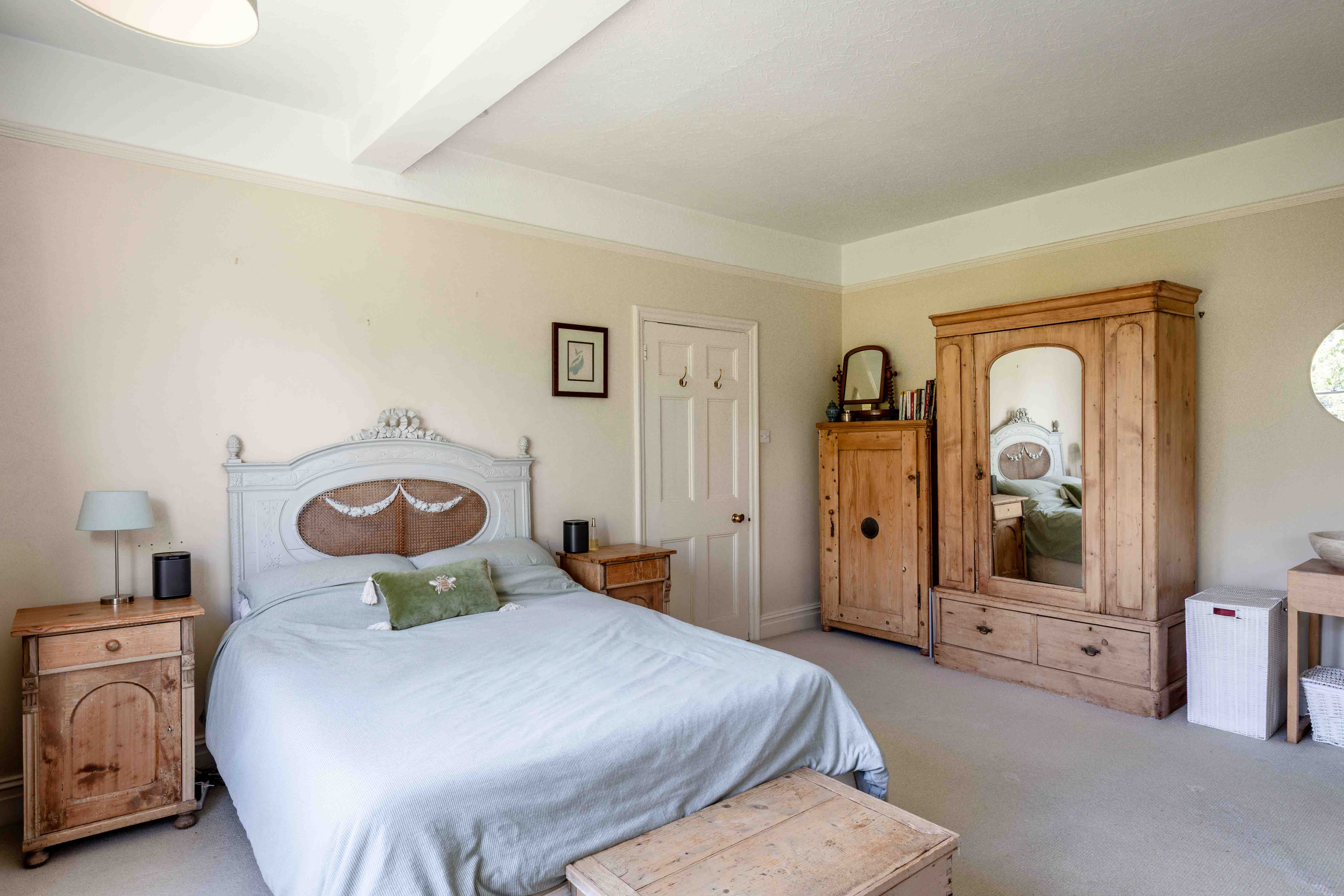 Upstairs, the three double bedrooms are full of charm, the principal bedroom boasting its own shower and basin, while a Jack and Jill bathroom connects the further bedroom with ease. The cove window in the third bedroom catches the morning light, framing leafy views. On the upper floor, two further bedrooms offer both flexibility and privacy—one a tranquil office, the other complete with an en suite. It is a house that adapts with you, holding its history close while opening itself fully to modern living.