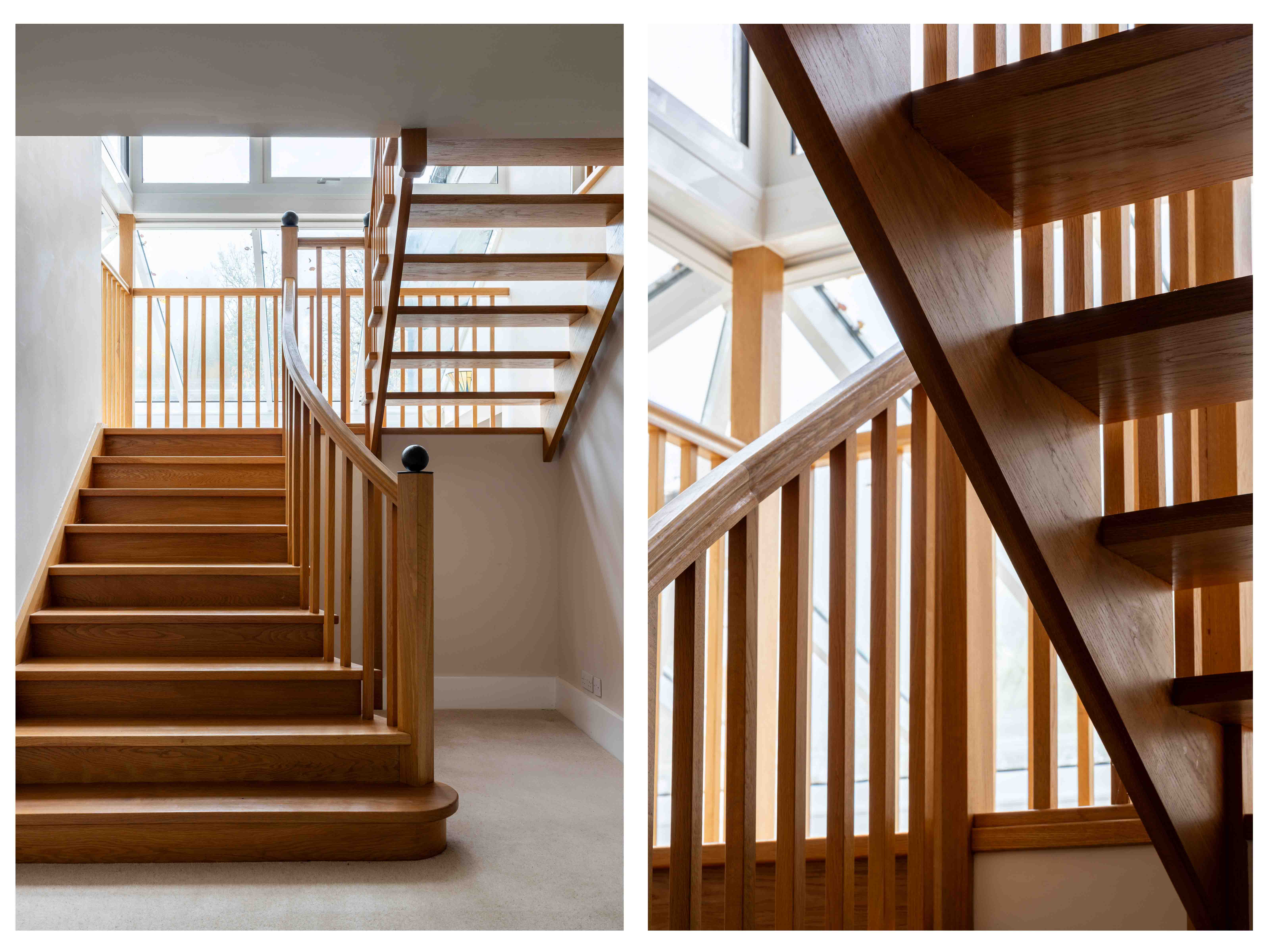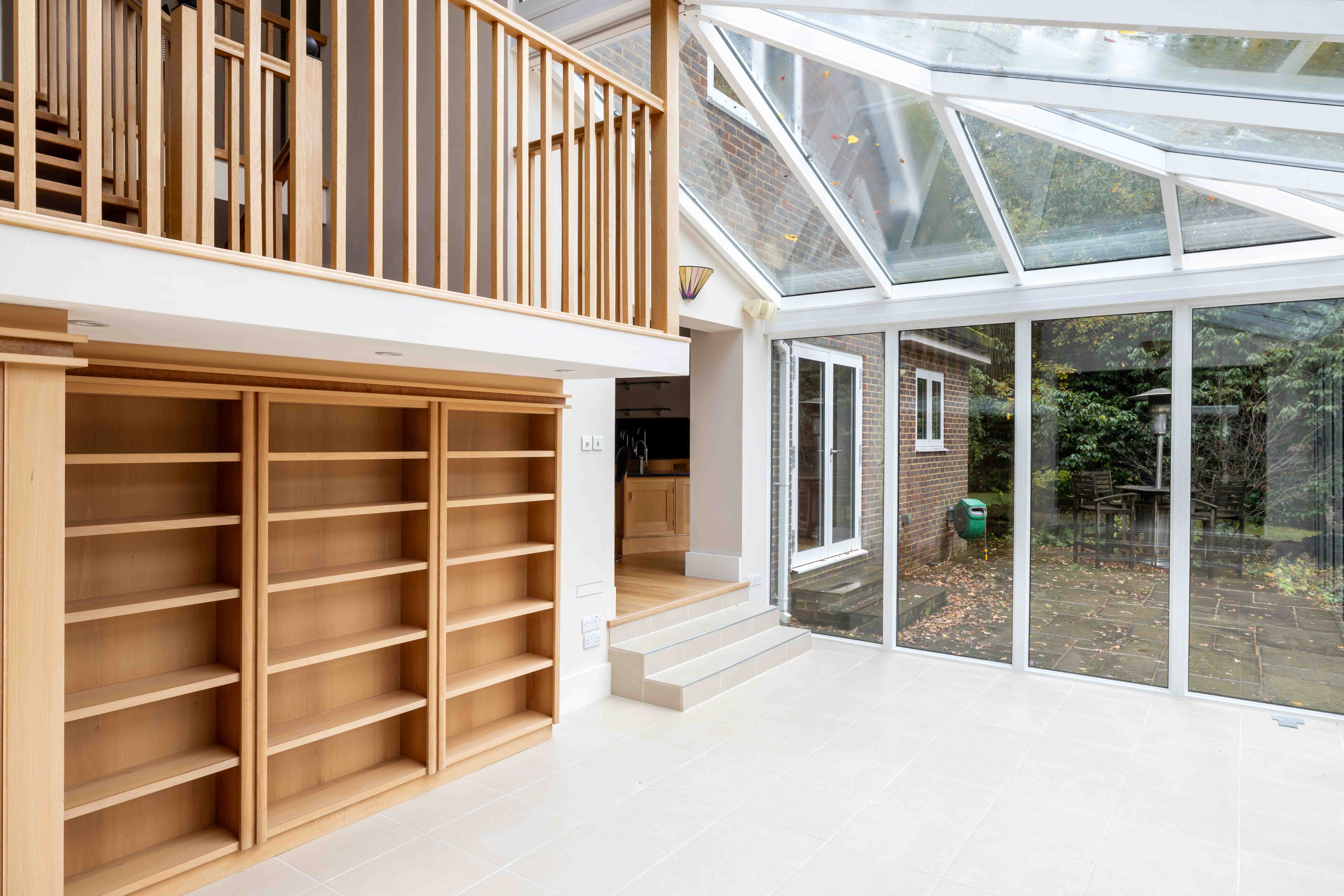 The dual-aspect sitting room is a picture of understated elegance, with its stone fireplace promising warmth through the winter months. Flowing naturally onward, the conservatory provides an exquisite transition – its atrium roof bathing the open-tread staircase in natural light, while glass walls blur the line between inside and out. Each space connects intuitively, offering versatility for family life, home working, or quiet moments of retreat.