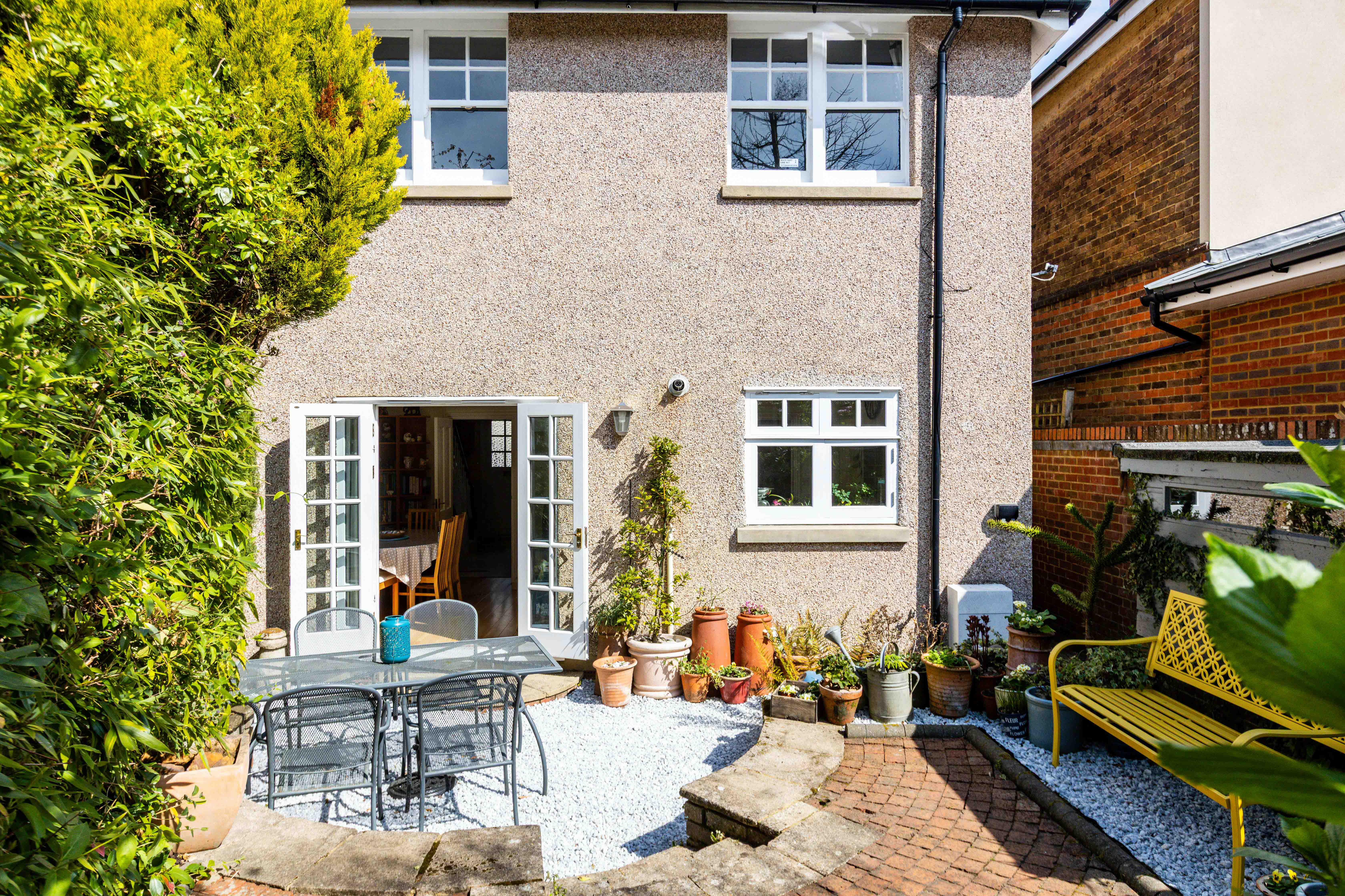 French doors lead out to the mature garden. A sun-drenched retreat, the garden sets the perfect scene for al-fresco dining, whilst providing a low-maintenance space, perfect for busy households. Landscaped with care, it offers a surprising degree of privacy and is perfect for entertaining, relaxing, or simply enjoying peaceful moments. There's also a useful brick outbuilding than could be converted to an office space or removed to grow the garden.