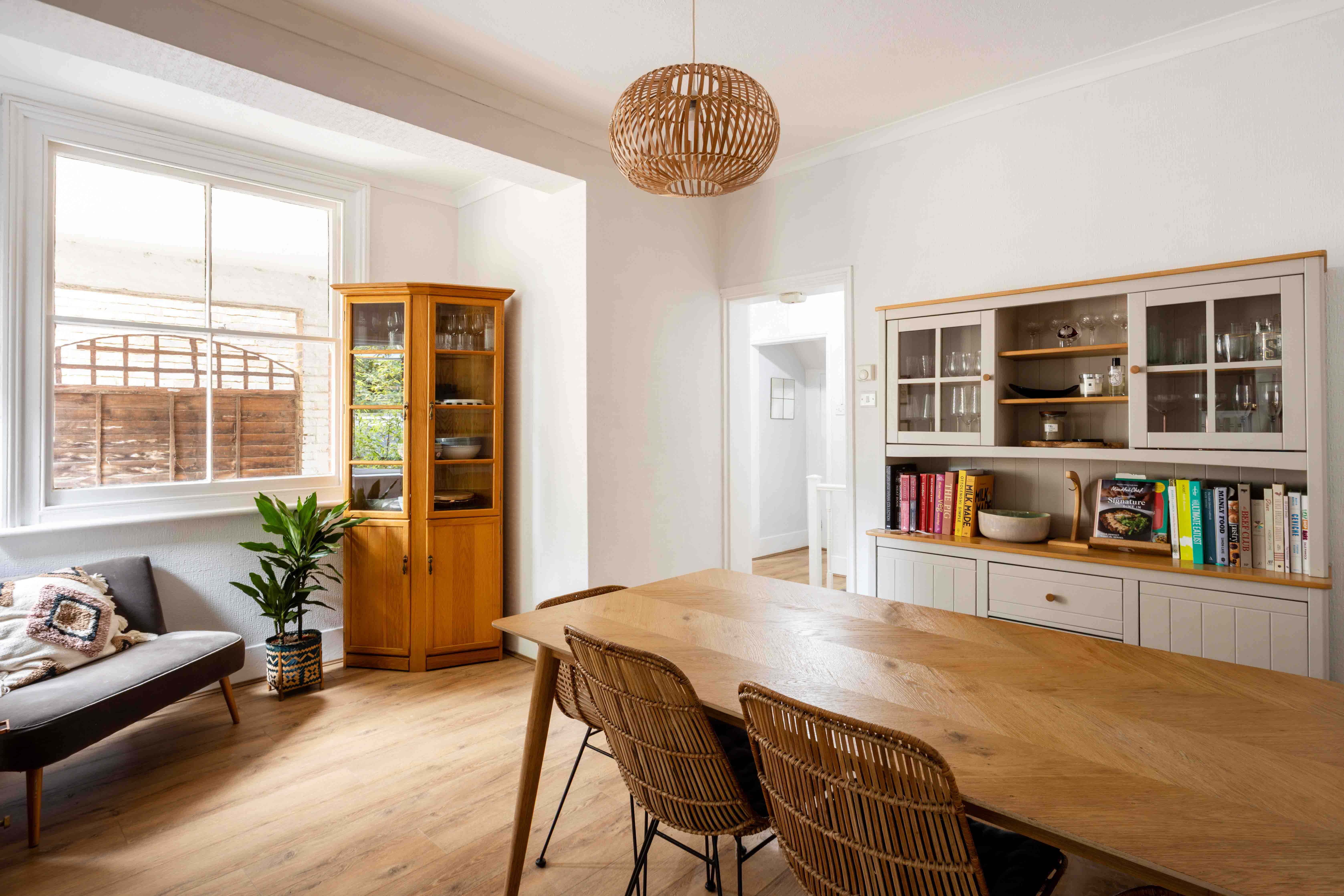 Stepping inside, there’s an immediate sense of calm. The interior is cool-toned and contemporary, yet still honours its past with subtle period details and a layout that flows naturally from one space to the next. The dining room offers a gracious setting for family meals and gatherings, while the adjoining kitchen is light, practical, and well-designed for modern living. A downstairs bathroom completes this level, cleverly integrated without compromising the home’s generous sense of openness.