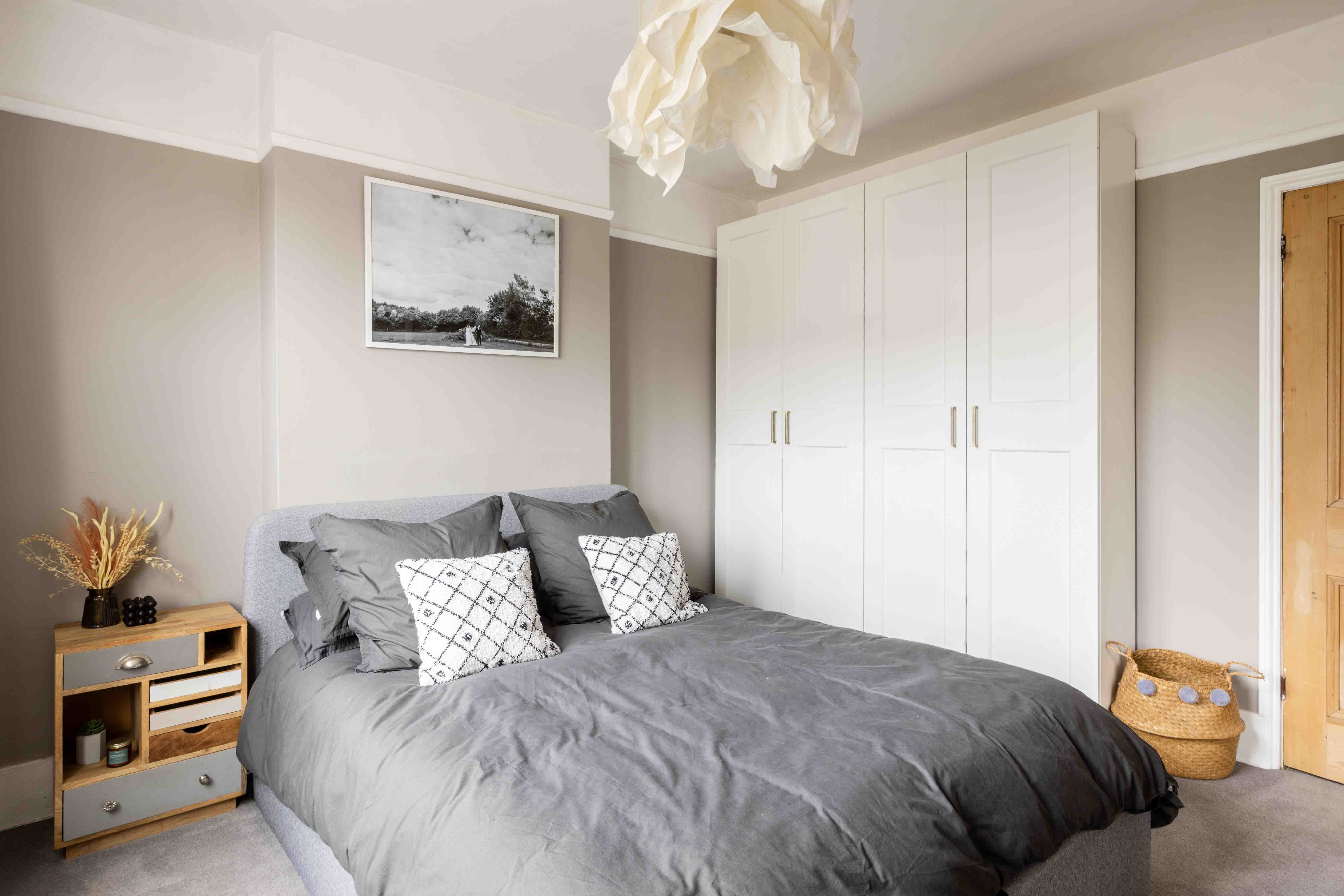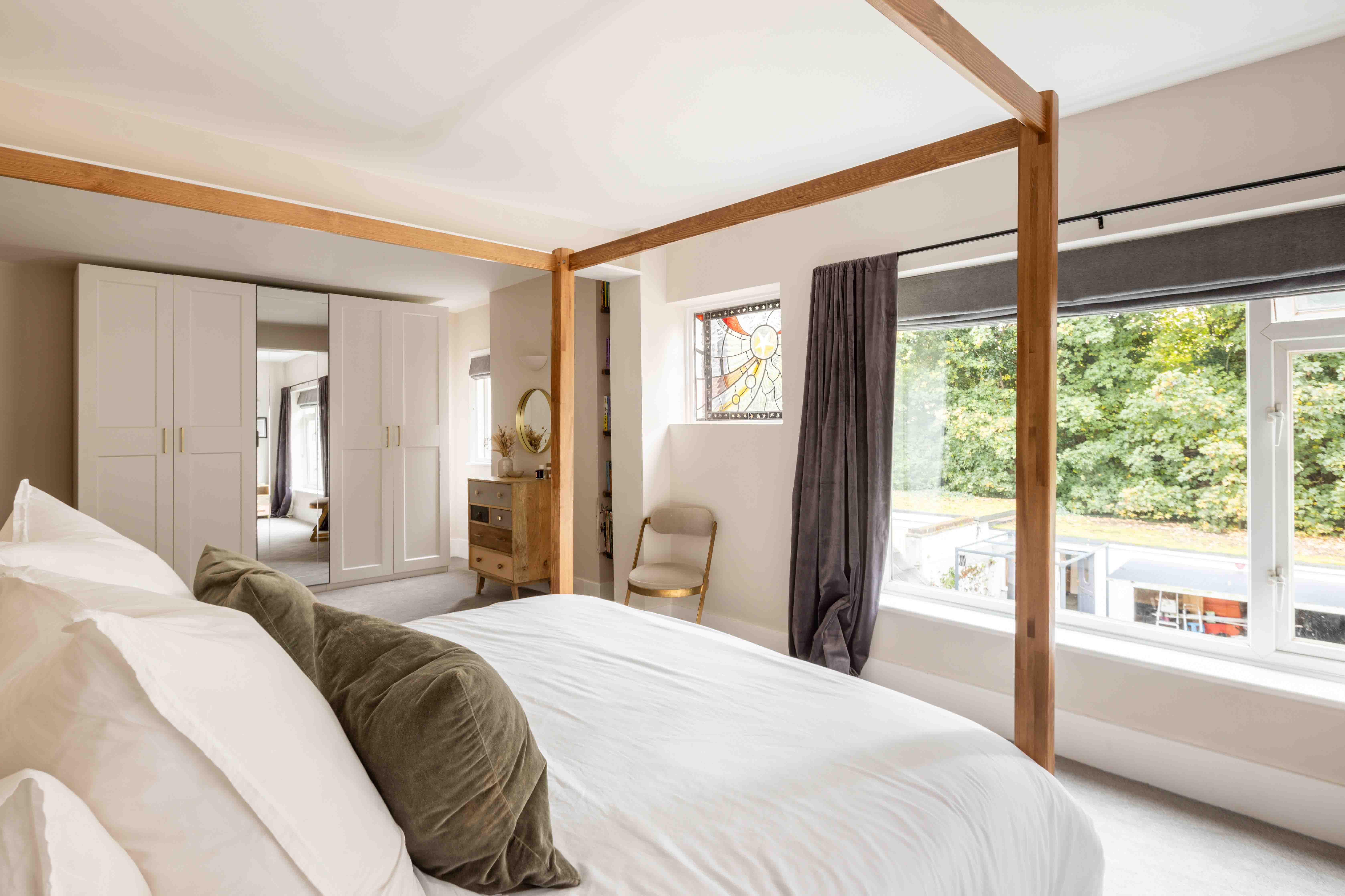 The first floor offers a sense of quiet retreat. A former kitchen has been reimagined as a sleek utility area — a nod to the home’s layered history alongside a stylish family bathroom. The principal bedroom is a masterclass in light and proportion, with soft natural tones and sunshine streaming through generous windows. Across the landing, a spare bedroom provides a perfect guest space or nursery.