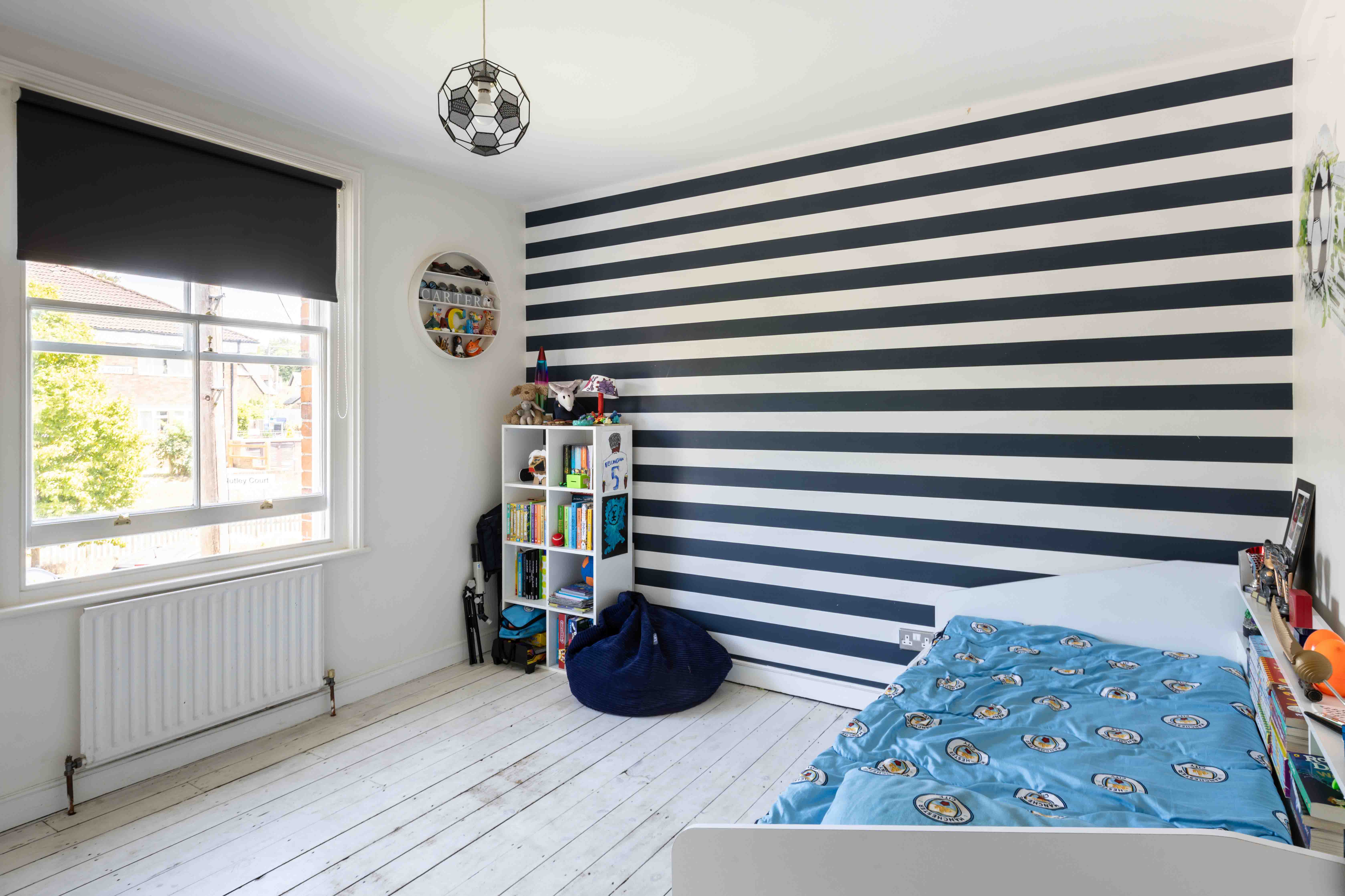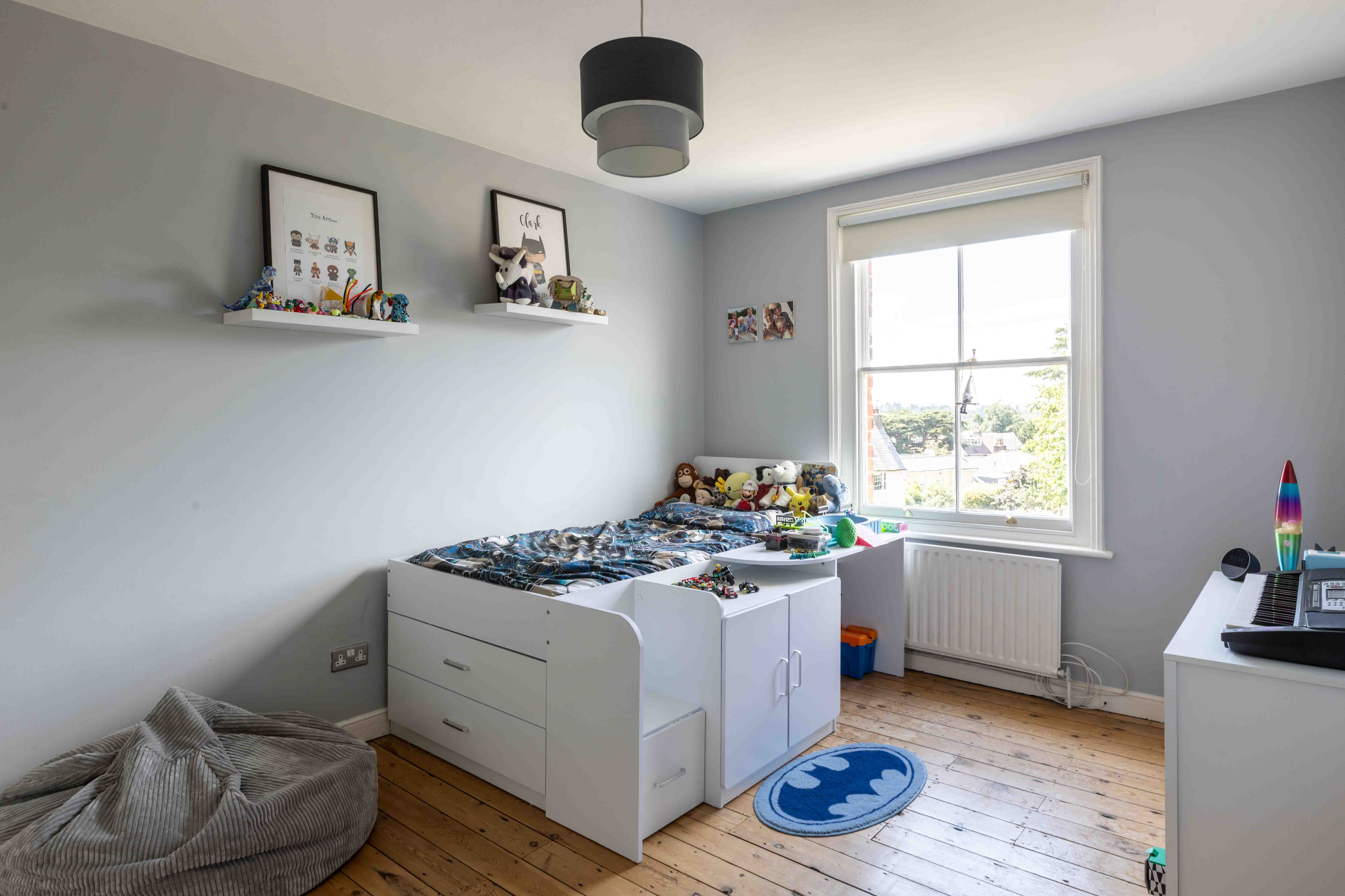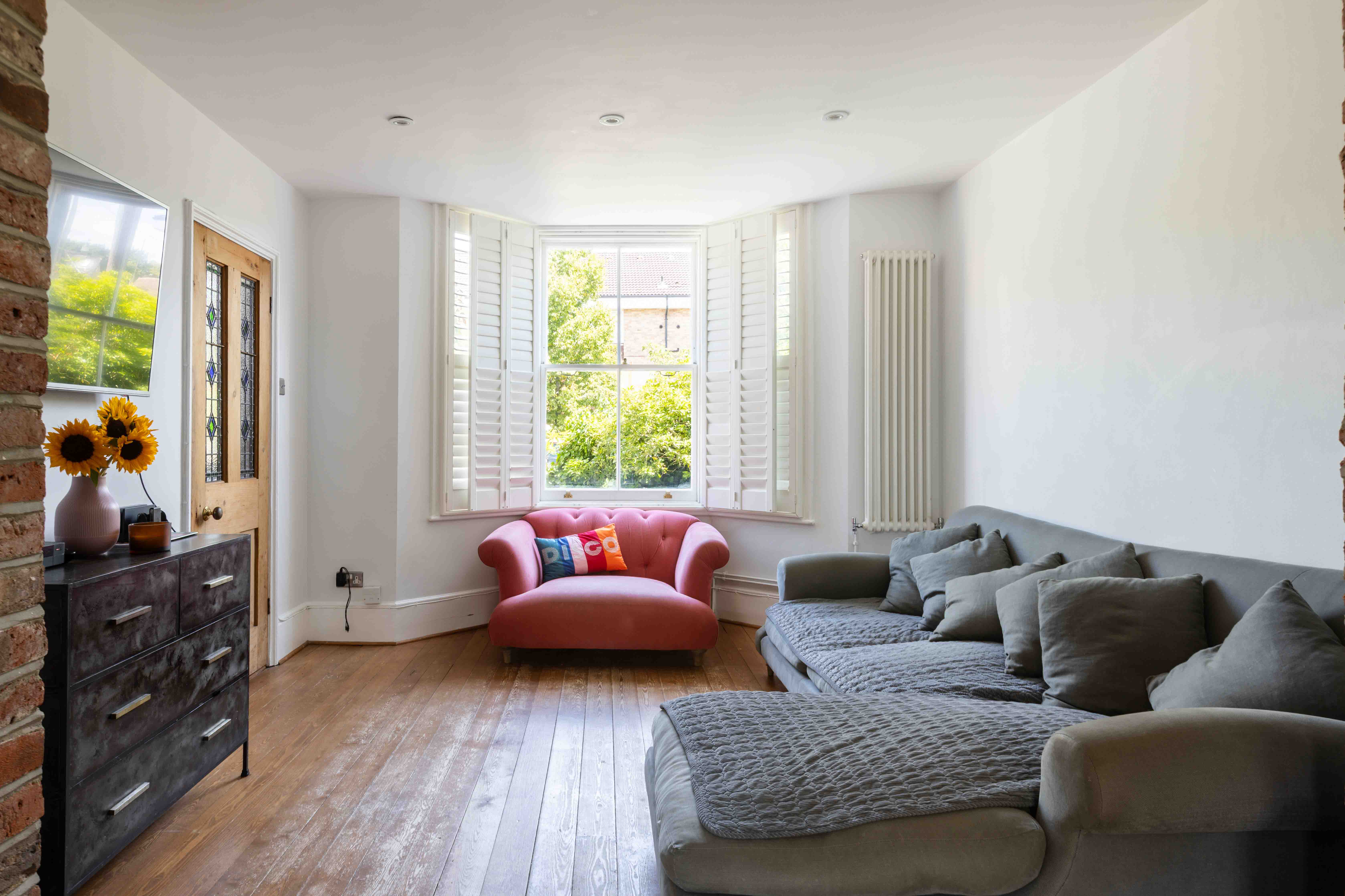 Upstairs, three double bedrooms are laid out across two floors, each with their own individual charm and leafy views. The first floor family bathroom is a masterclass in modern heritage design, with tongue and groove panelling, a roll-top bath and separate shower, all wrapped in soft period tones and polished chrome.