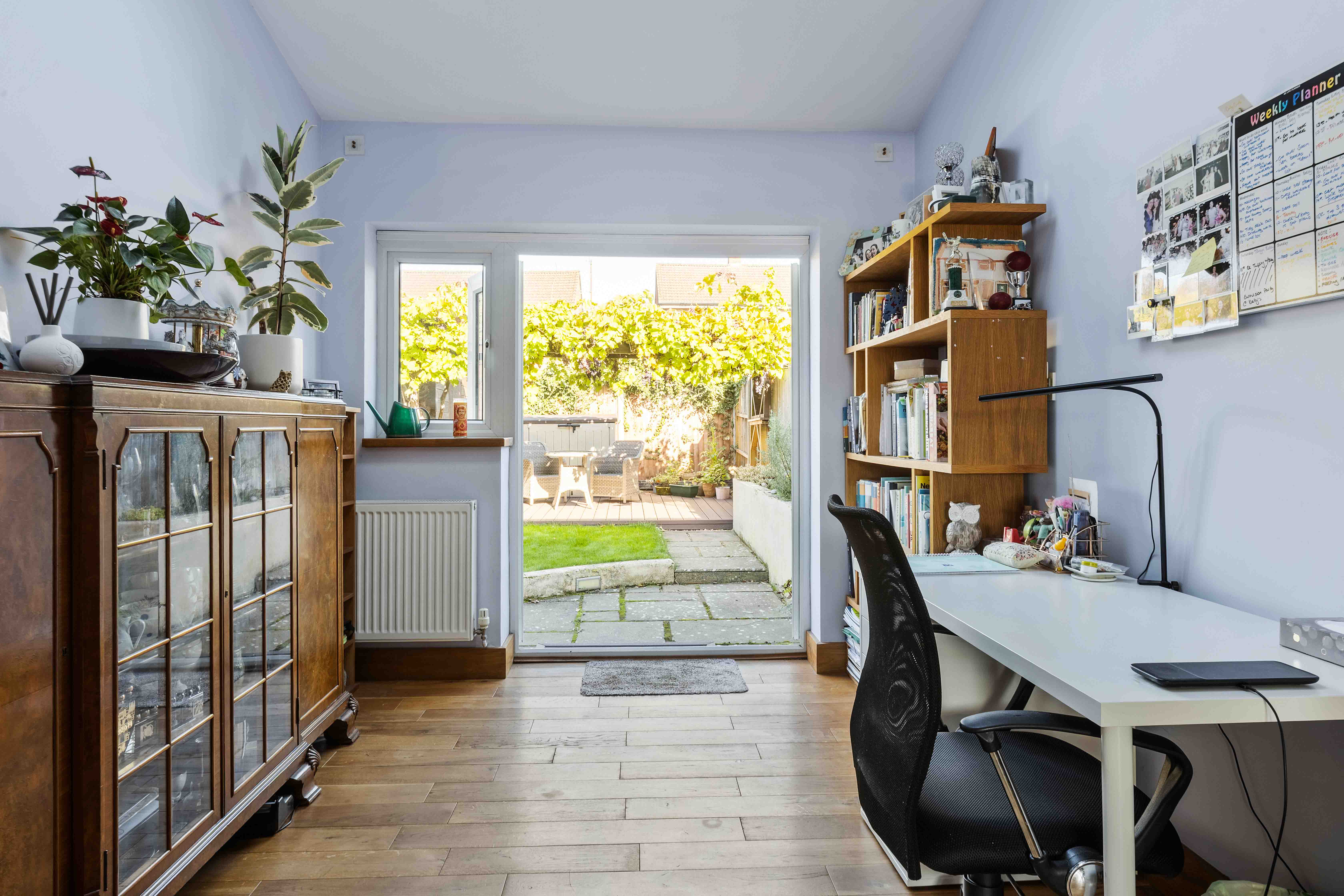 Upstairs, three generous bedrooms offer a feeling of comfort and calm, each thoughtfully finished in soft, natural tones that invite rest and restoration. The modern bathroom continues the home’s understated elegance, pairing clean lines with contemporary fittings. To the side, the unusually wide plot adds versatility—offering access to the garden, potential for further landscaping, or simply the luxury of space that so many homes lack. The garden itself has been carefully designed for enjoyment, with a private, landscaped layout ideal for alfresco dining, play, or peaceful summer evenings surrounded by greenery.