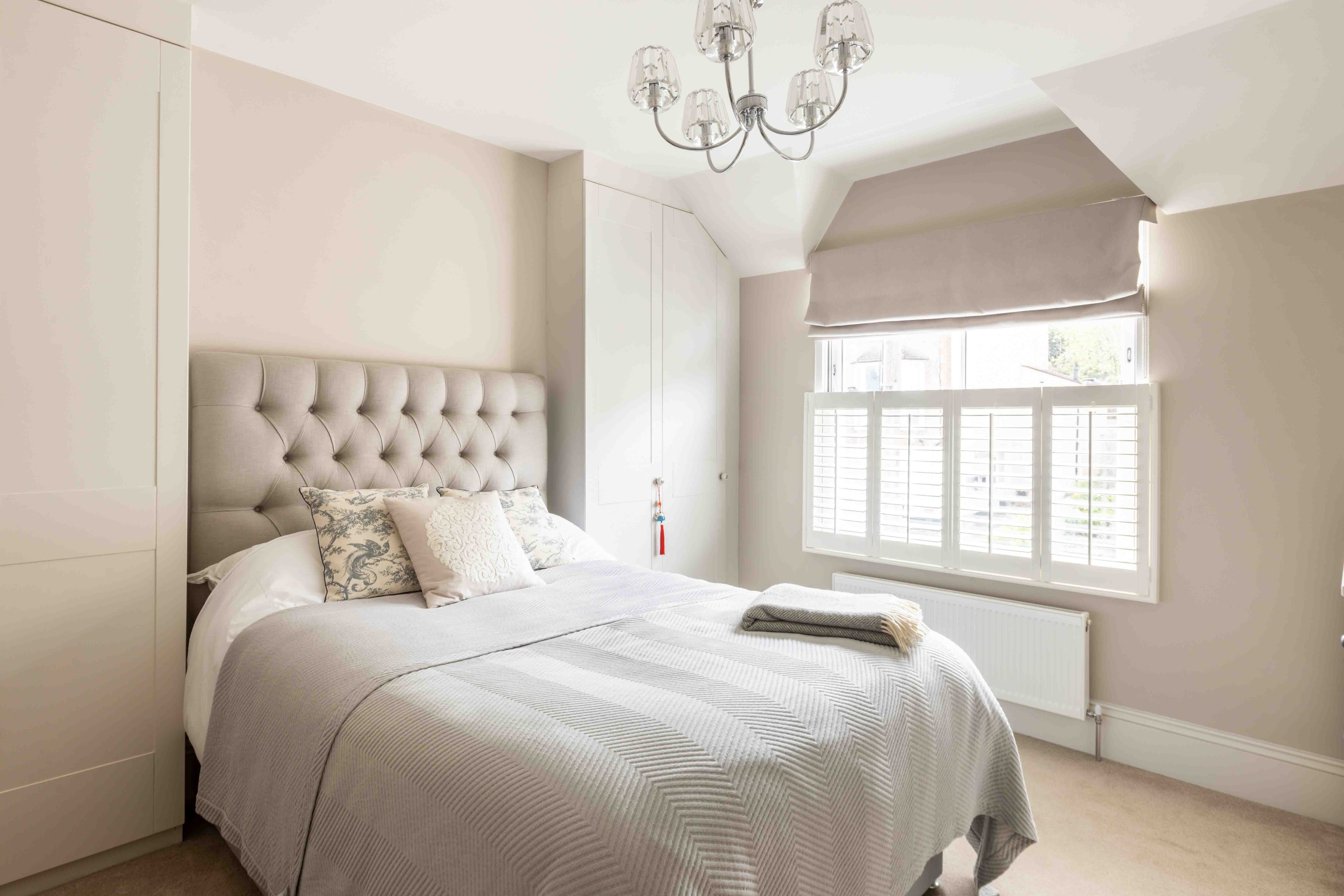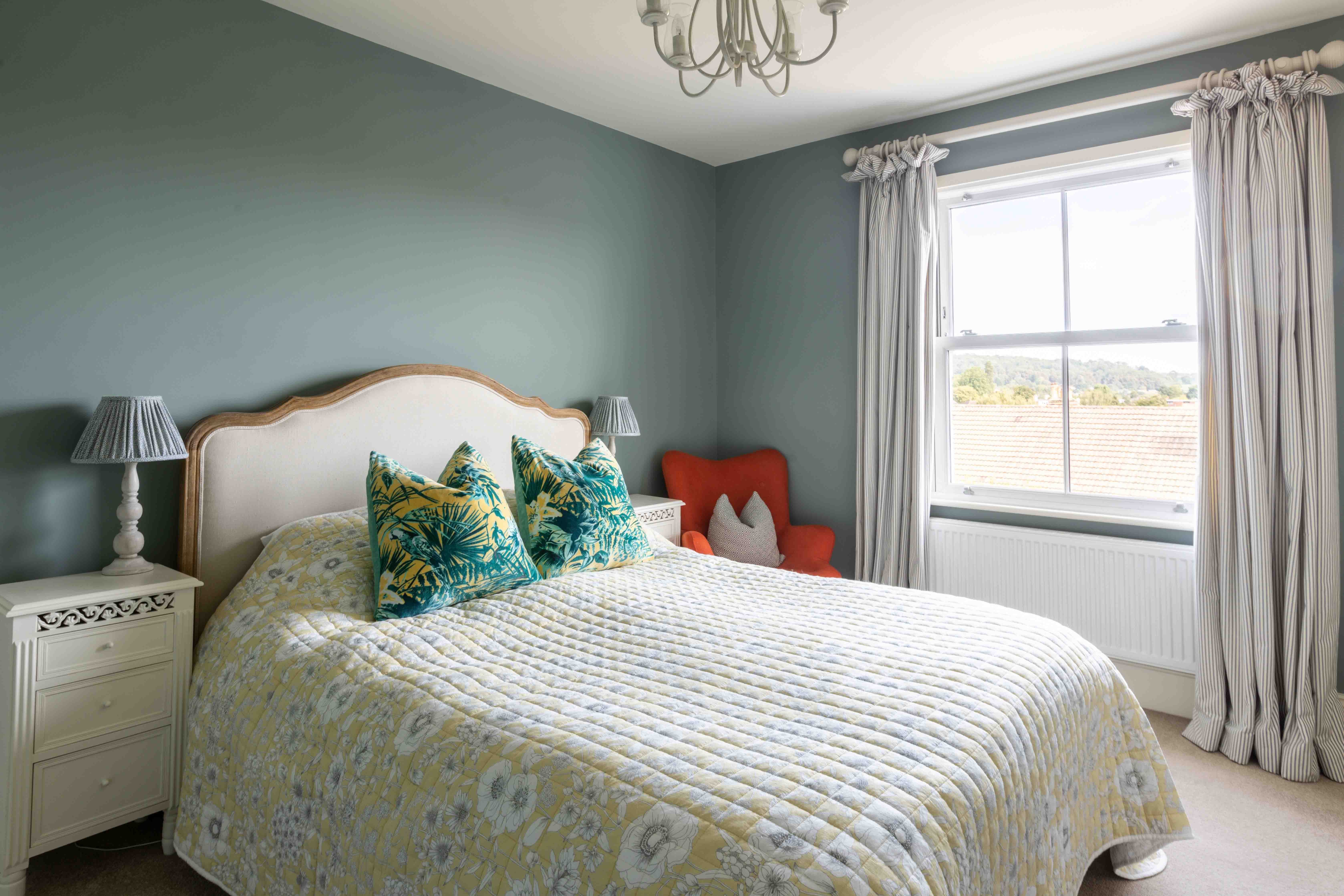 On the second floor, the principal suite awaits — a private sanctuary beneath the eaves. Light streams through the Juliet balcony doors, inviting you to pause with a coffee and watch the far reaching, leafy green views change throughout the seasons. There’s a walk-in wardrobe, a modern en-suite, and discreet eaves storage to keep the room beautifully uncluttered.