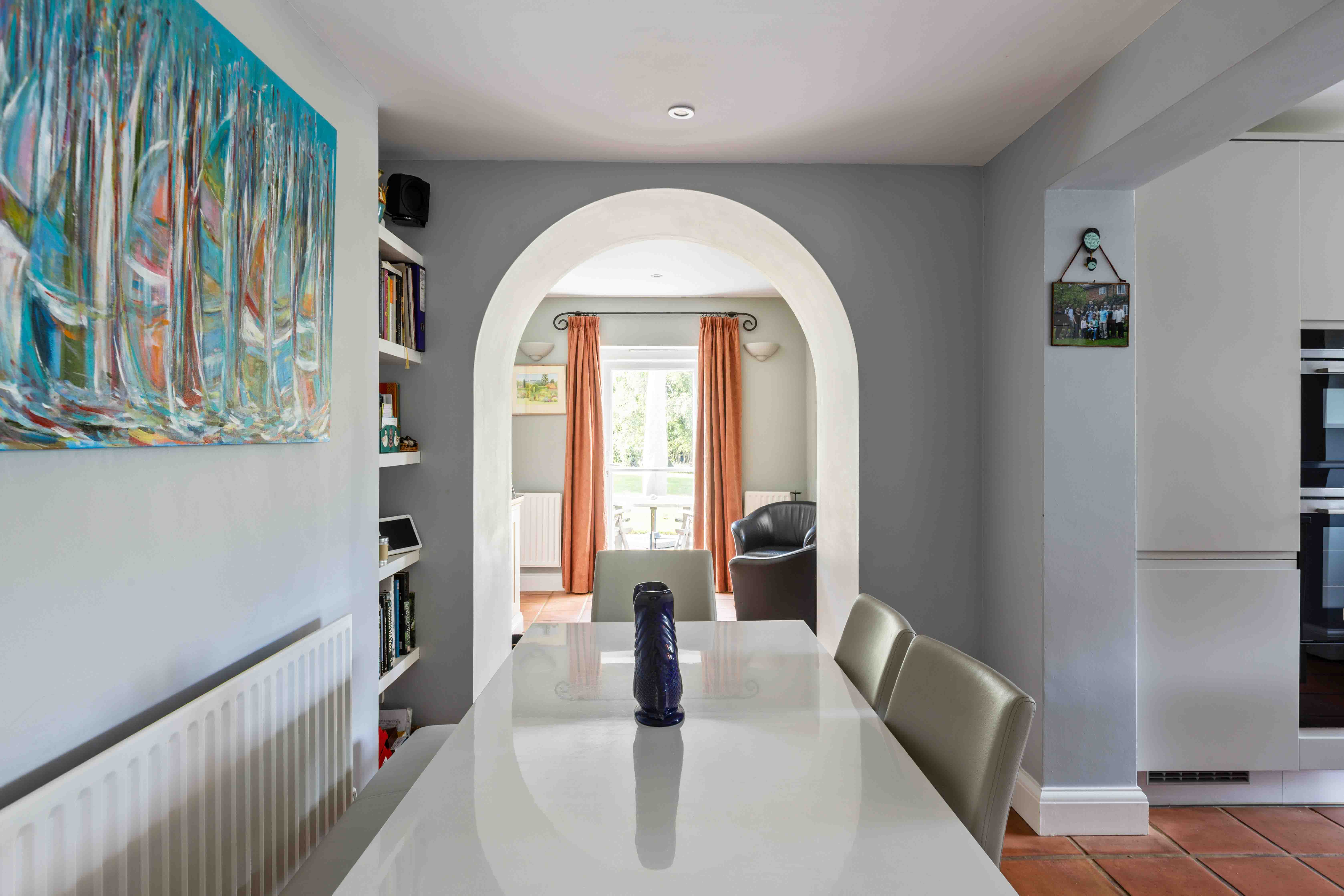 The current custodians have approached its restoration with sensitivity, reinstating character where it had been lost. A sympathetic porched entrance now welcomes guests, while laminate parquet style flooring glows once again underfoot. Even the former entrance—once forgotten—has been revived as a charming arched window, a nod to the home’s original design intent.