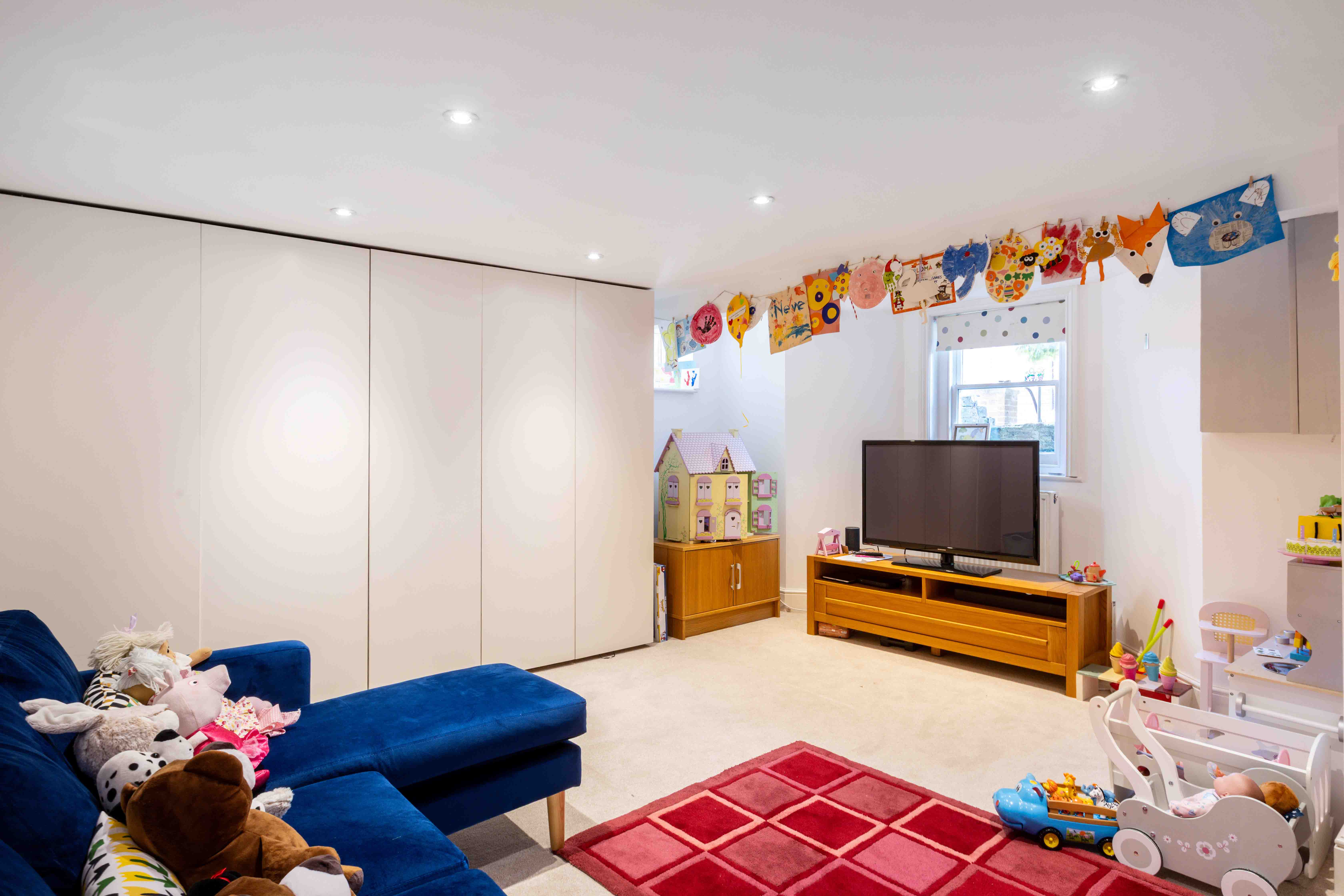 Downstairs, the lower ground floor is currently a dedicated family and playroom, a brilliant bonus space that could just as easily become a snug cinema room, teenage den or hobby haven. And throughout the house, the palette remains calm and neutral, with picture rails, painted floorboards, and traditional radiators all gently nodding to the home’s Edwardian roots without feeling overly formal.