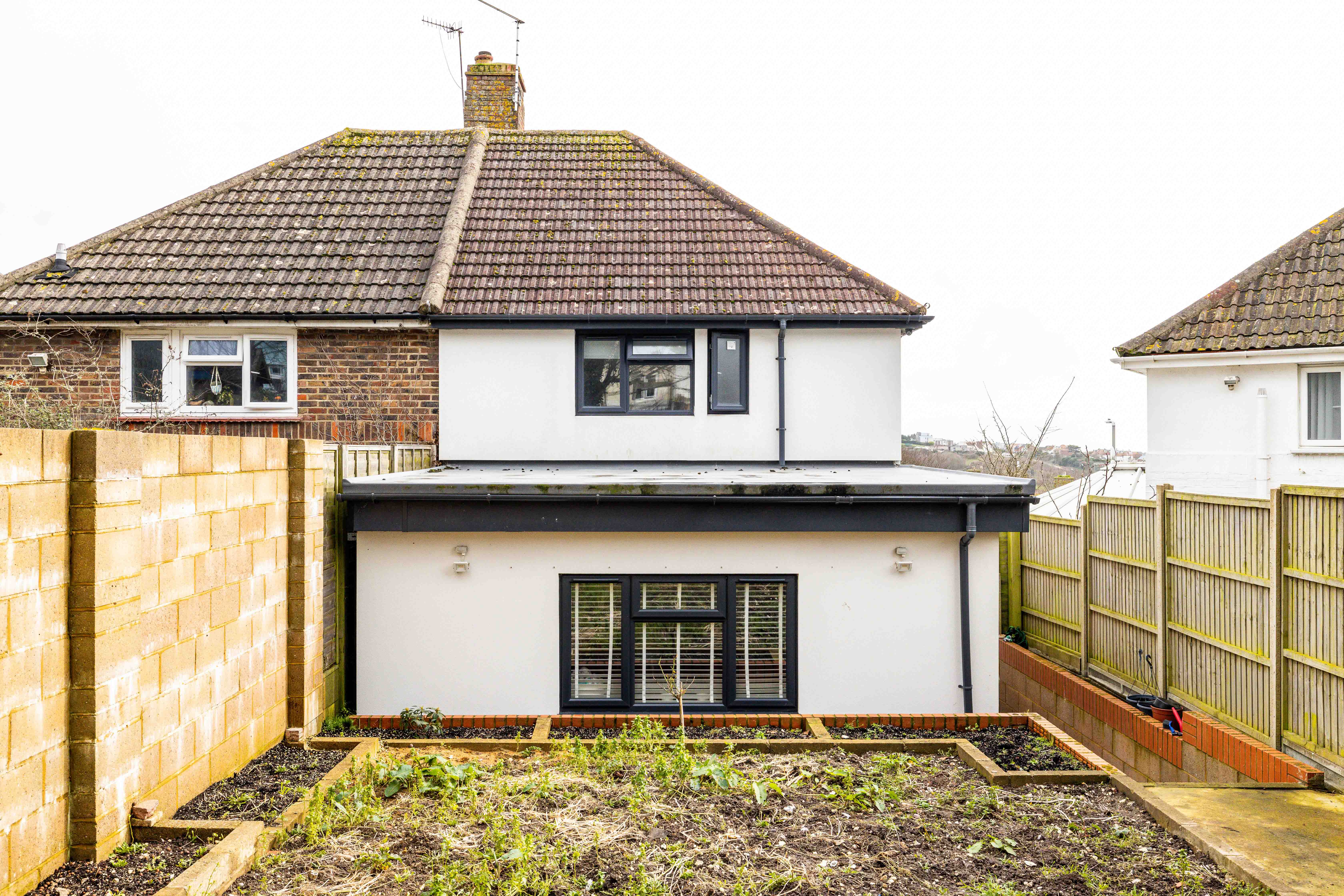 Outside, the tiered garden offers exciting potential. It is a generous and well-proportioned space, with the structure and foundations already in place to create something truly special. While it would benefit from thoughtful landscaping, the possibilities are abundant. from layered planting and elegant terraces to outdoor dining areas and quiet corners for relaxation. It is easy to envisage summer evenings spent entertaining friends, children playing across the levels, or simply enjoying the fresh coastal air in a garden designed entirely to your taste.