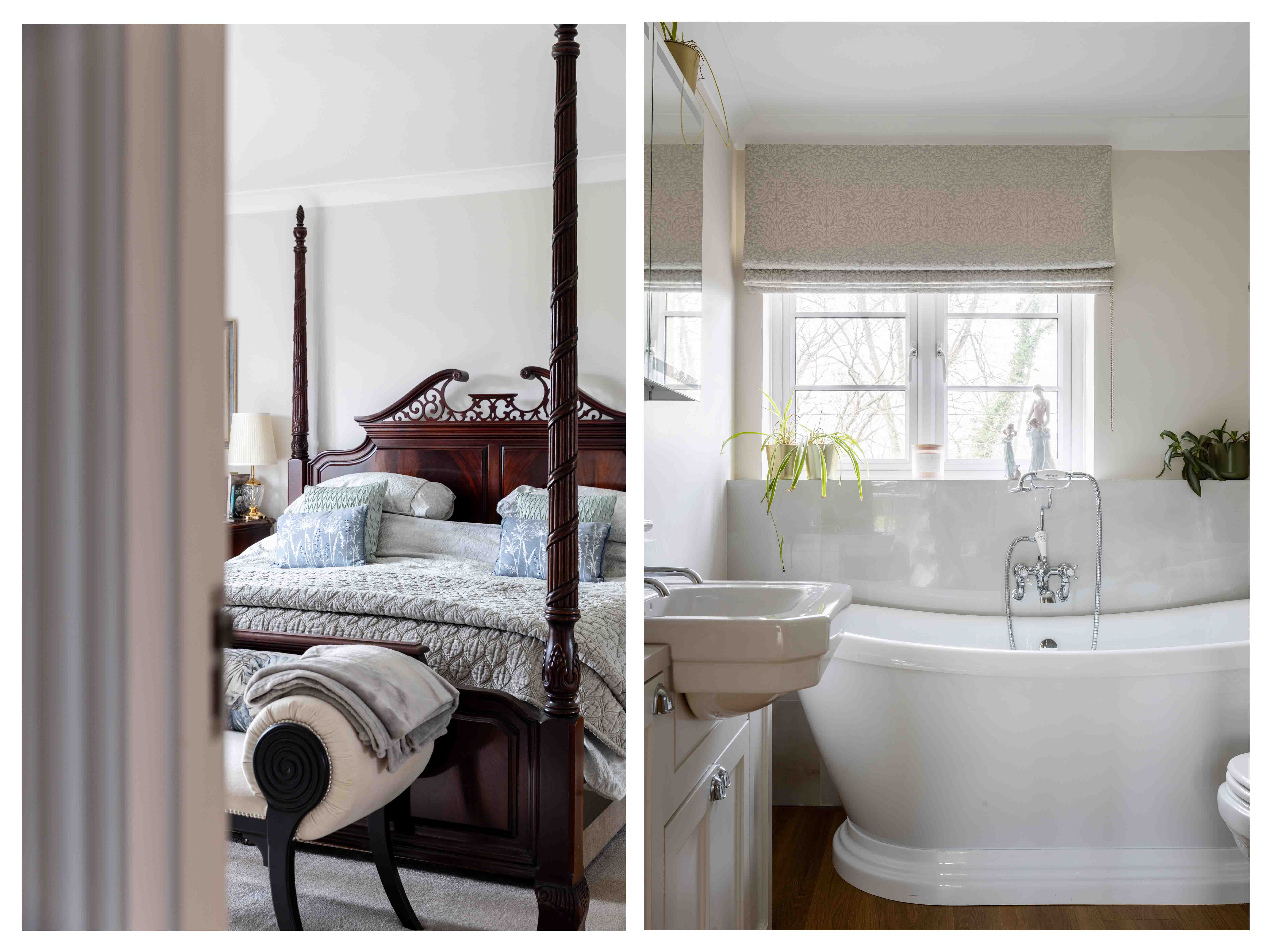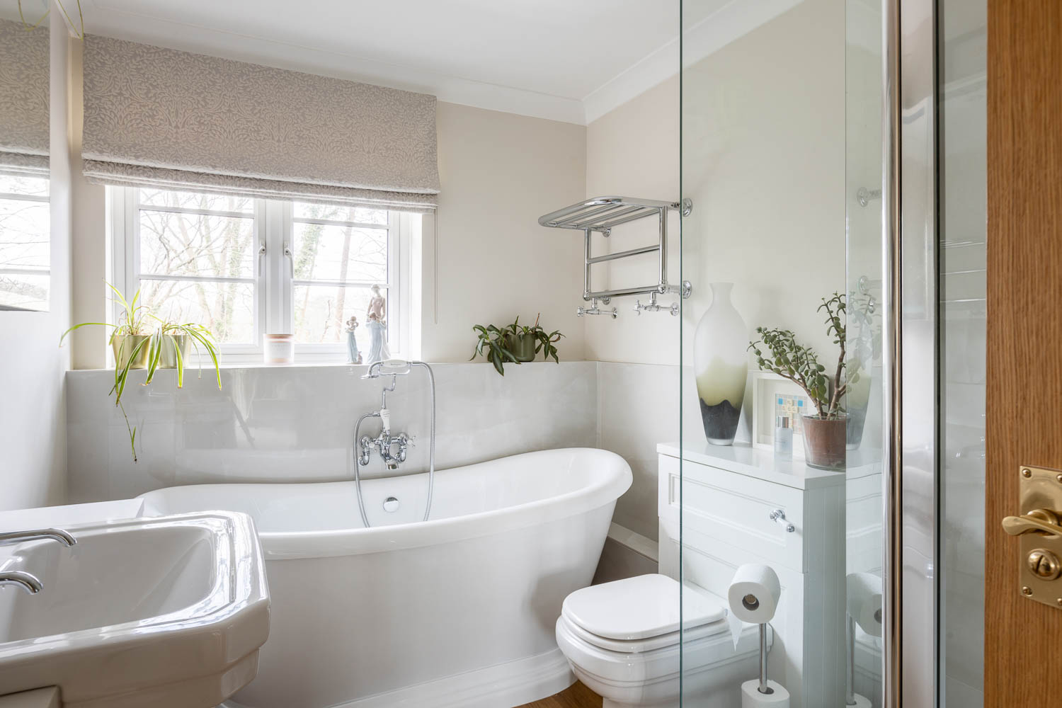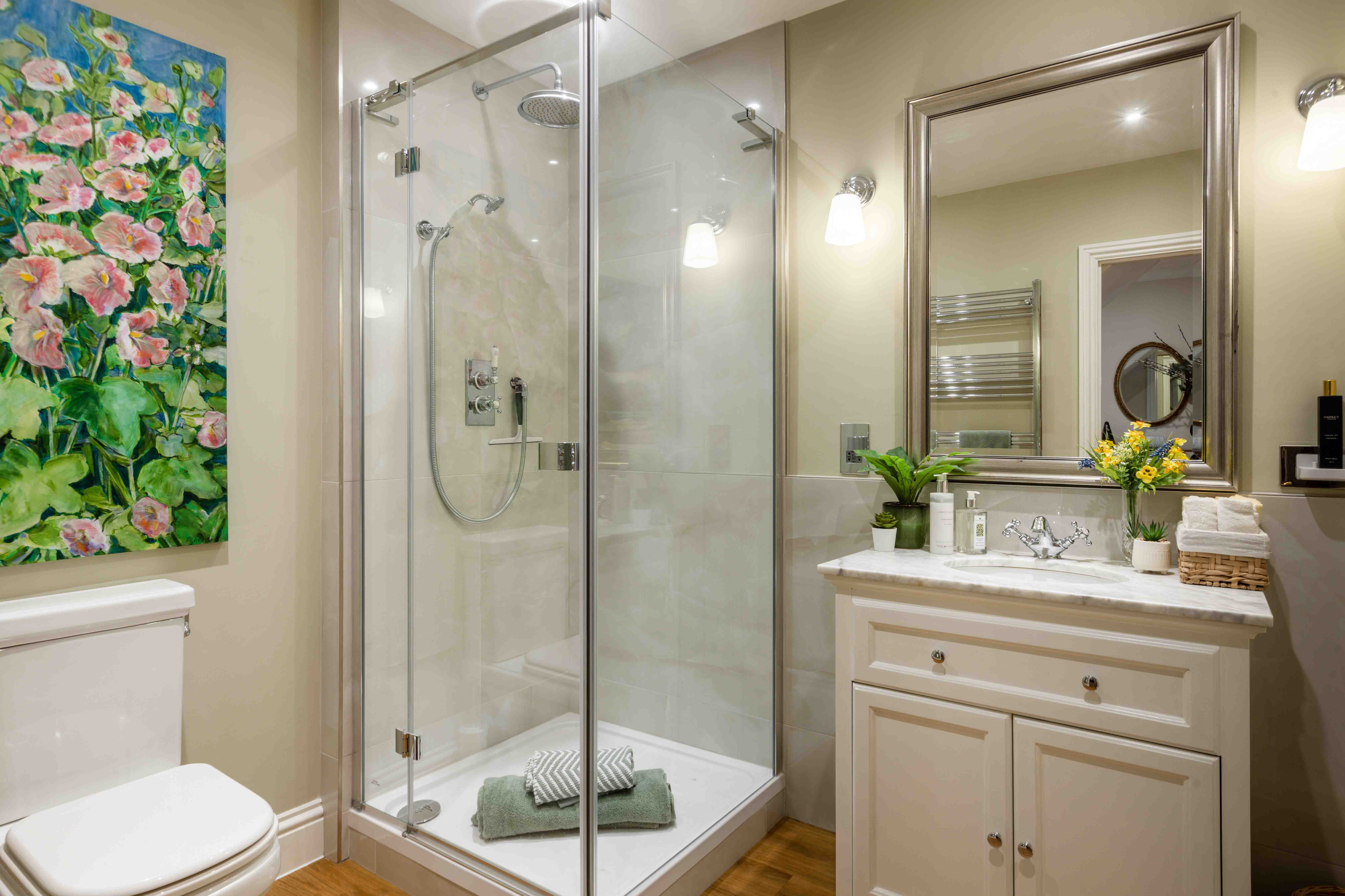The first floor houses four beautifully appointed double bedrooms, each thoughtfully designed for comfort. The three additional bedrooms are served by an impressive family bathroom, complete with a roll-top bath and separate shower, blending classic design with modern convenience. The principal suite is a standout feature, boasting a Juliet balcony with uninterrupted countryside views, a generous walk-in wardrobe with bespoke cabinetry, and a luxurious en suite - complete with Burlington sanitary ware. The en suite offers a standalone bathtub and a separate shower, making it a true retreat.