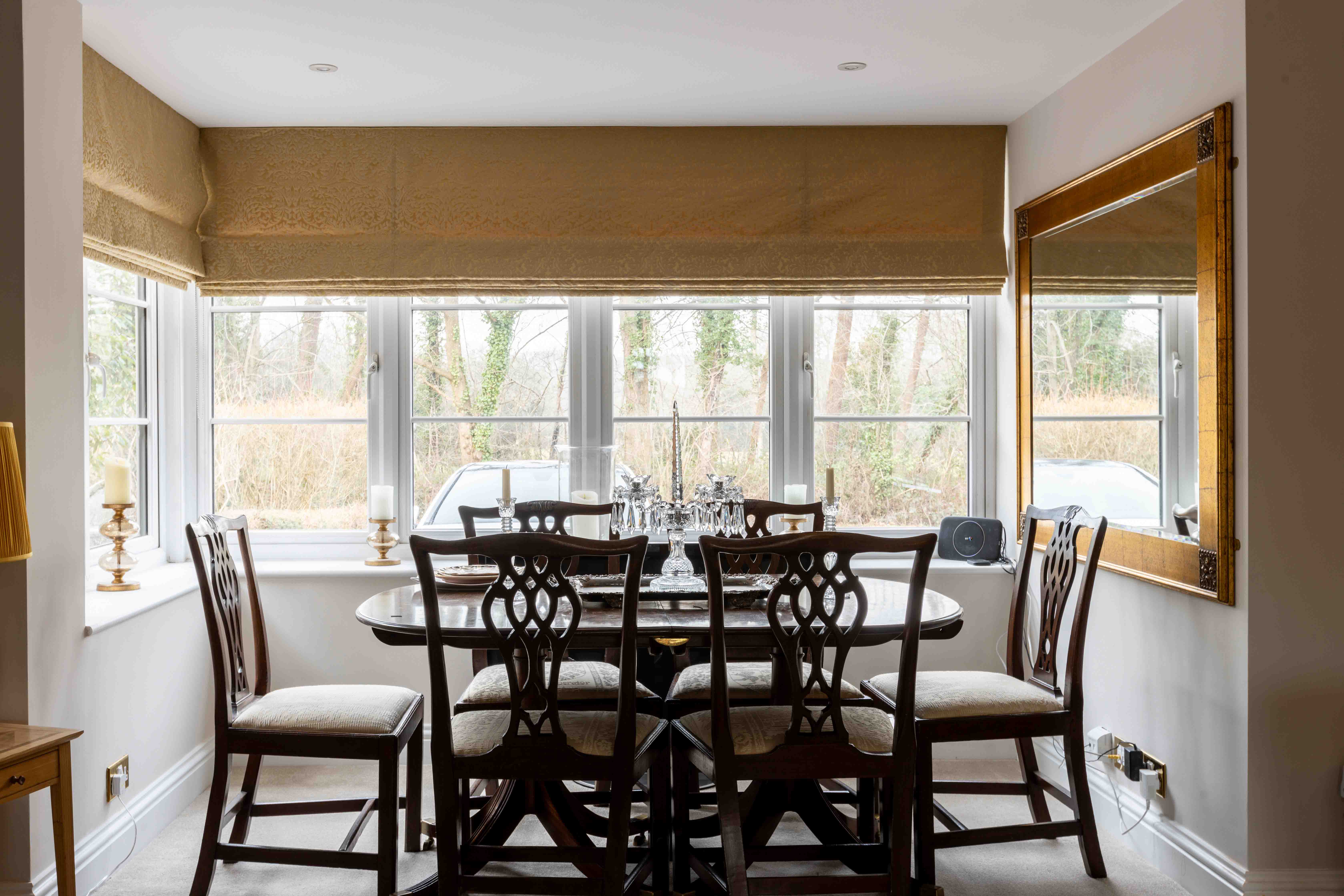 Bifold doors flood the space with natural light and open onto a patio, ideal for summer barbecues and al fresco dining. The expansive lawn stretches out toward the rolling hills, with mature planting and a large tree providing privacy. Side access adds practicality to the outdoor spaces, making this home ideal for both entertaining and family living. A second reception room provides further flexibility, featuring a large bay window that is currently home to a formal dining table. Double doors connect this space to the open-plan kitchen area, creating a harmonious flow. With room for both formal and informal entertaining, this property offers something for every occasion. A large utility room and a downstairs shower room ensure everyday convenience is well catered for.