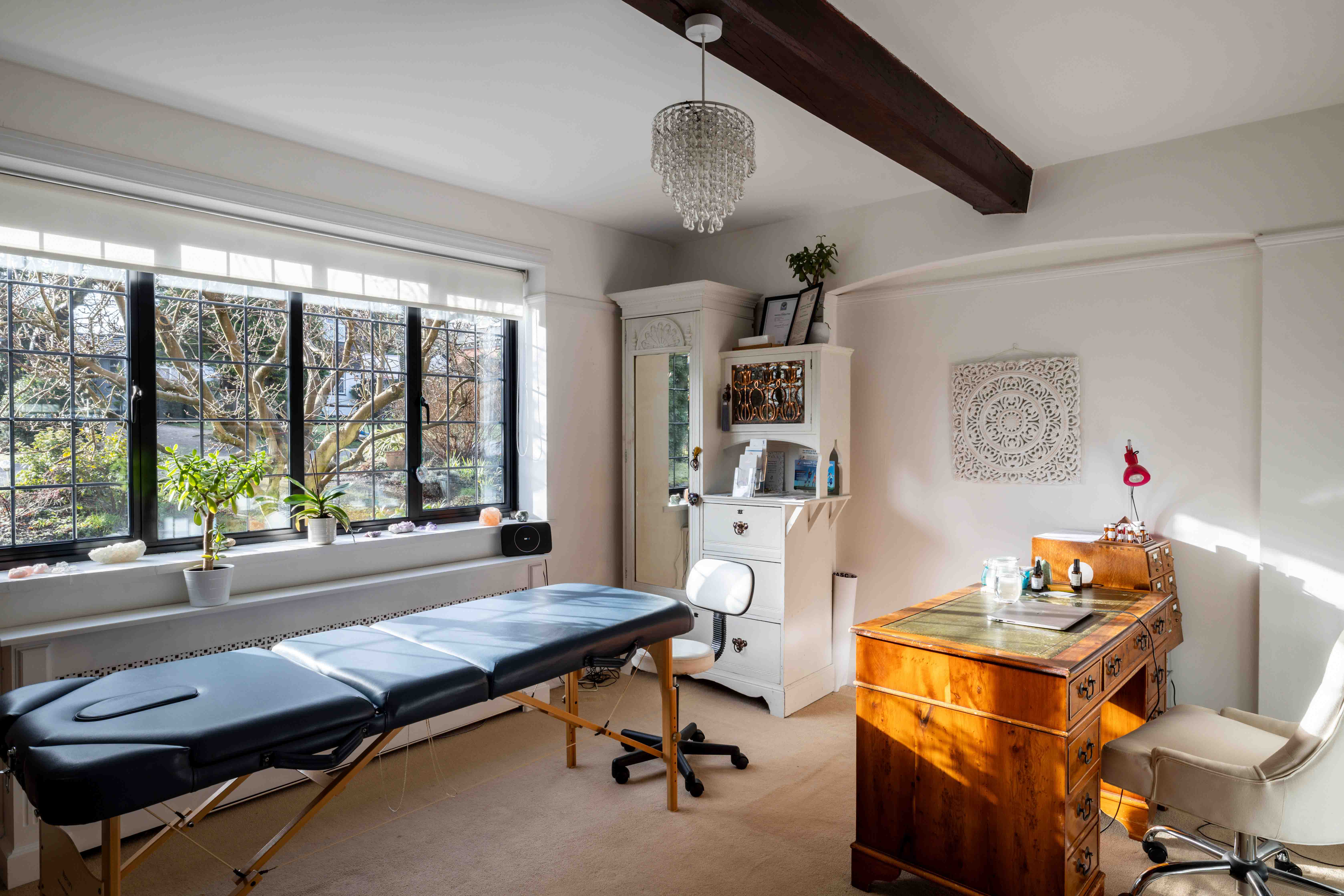 The approach alone hints at what lies beyond: a pretty period façade softened by mature planting and the quiet confidence of a home that sits comfortably within its surroundings. Step inside and the generous central entrance hall immediately sets the tone, acting as a natural hub from which the house unfolds. To one side lies a substantial home office — a rare luxury — complete with its original brick fireplace and oak mantel. It is a room that feels calm and grounded, ideal for working from home, reading by the fire or simply closing the door on the day.