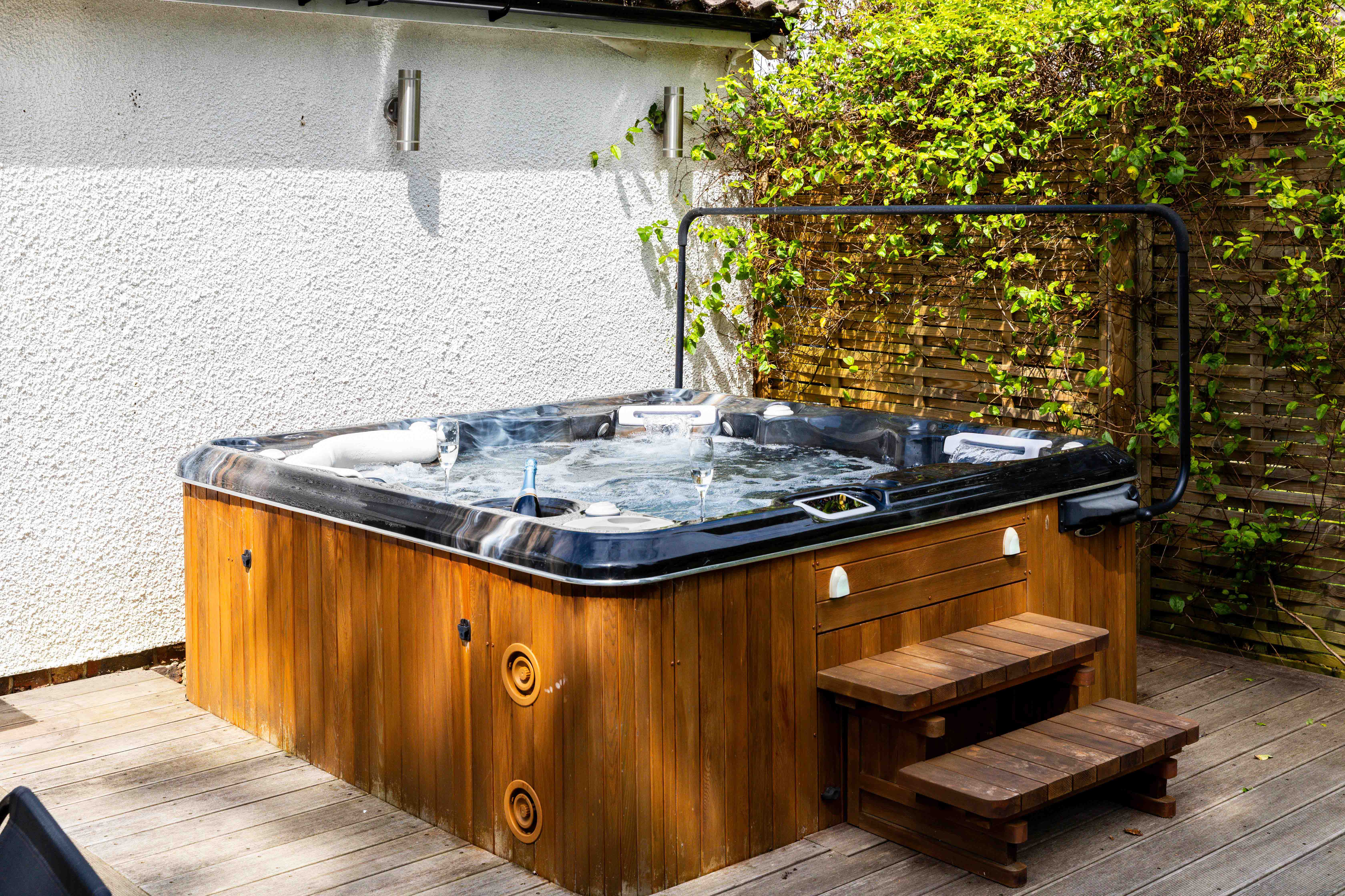 Double doors open from the landing onto a balcony, overlooking the quiet close and inviting a gentle Summer breeze. This residence presents an ideal opportunity to enjoy the perfect blend of comfort, space, and natural beauty in one of Nutfield's most desirable neighbourhoods. The south-west facing rear garden is a private sanctuary, enveloped by lush hedging and featuring a wrap around lawn. Designed for both relaxation and entertaining, a patio area invites al fresco dining, while a raised decking - bathed in sunlight - offers the perfect sun trap for lounging. Thoughtfully arranged zones include a dedicated space for a luxury hot tub, a sociable BBQ area, and a sun-soaked retreat for ultimate outdoor enjoyment.