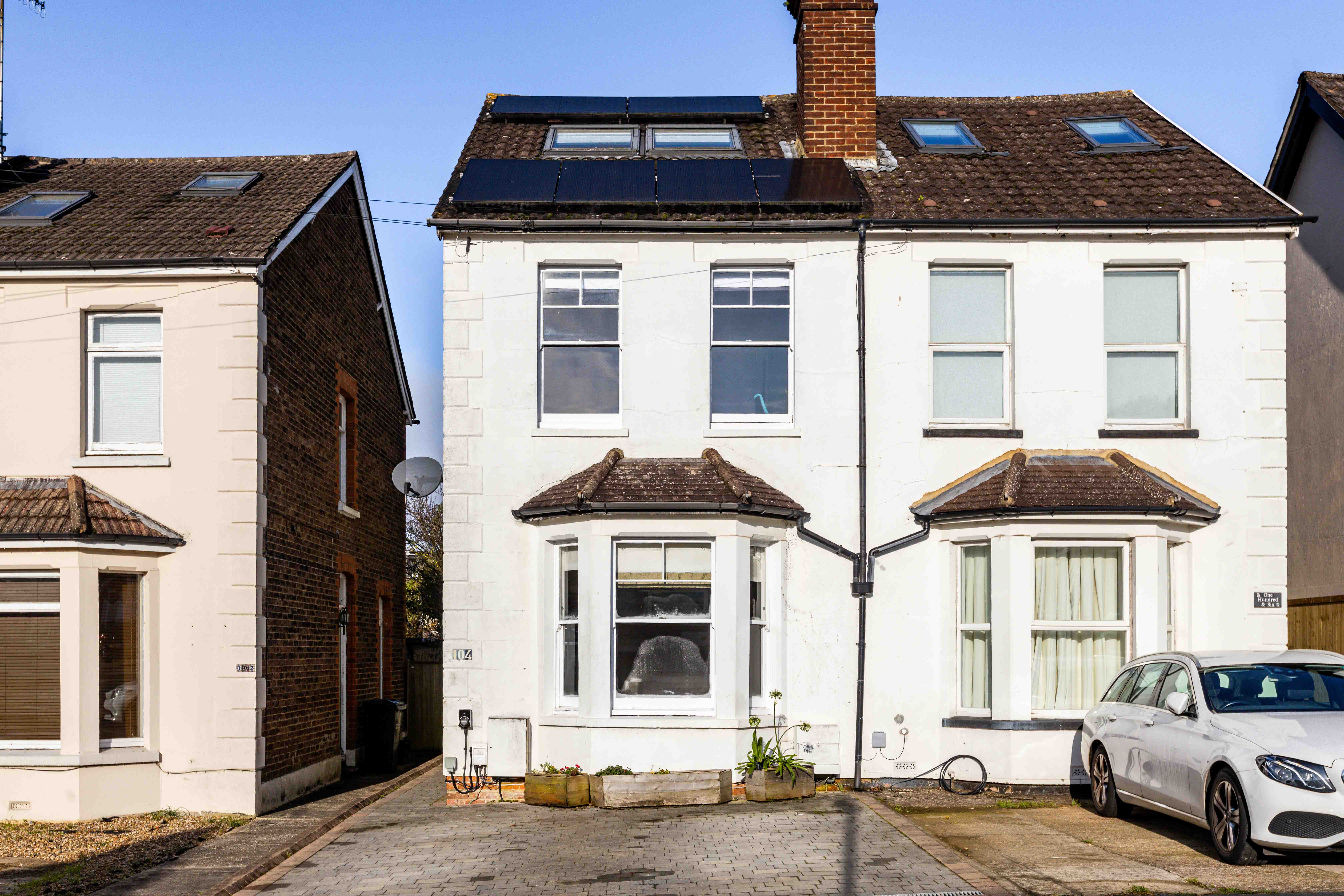 With parking for two cars, the property features a traditional side entrance leading into an expansive and welcoming front reception room. Bathed in morning light through its large bay window, this space is further enhanced by the original fireplace, creating a cosy yet elegant atmosphere.
