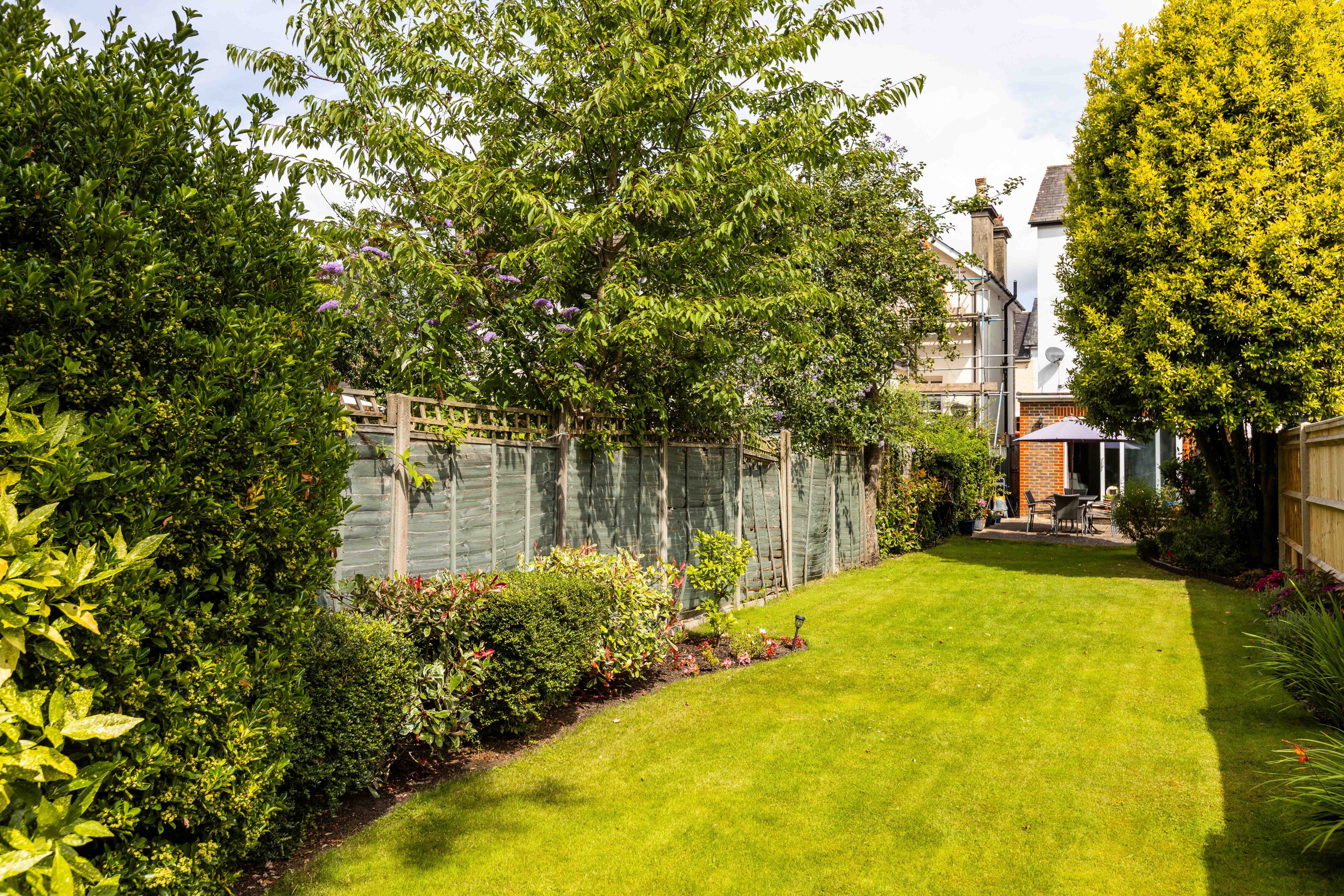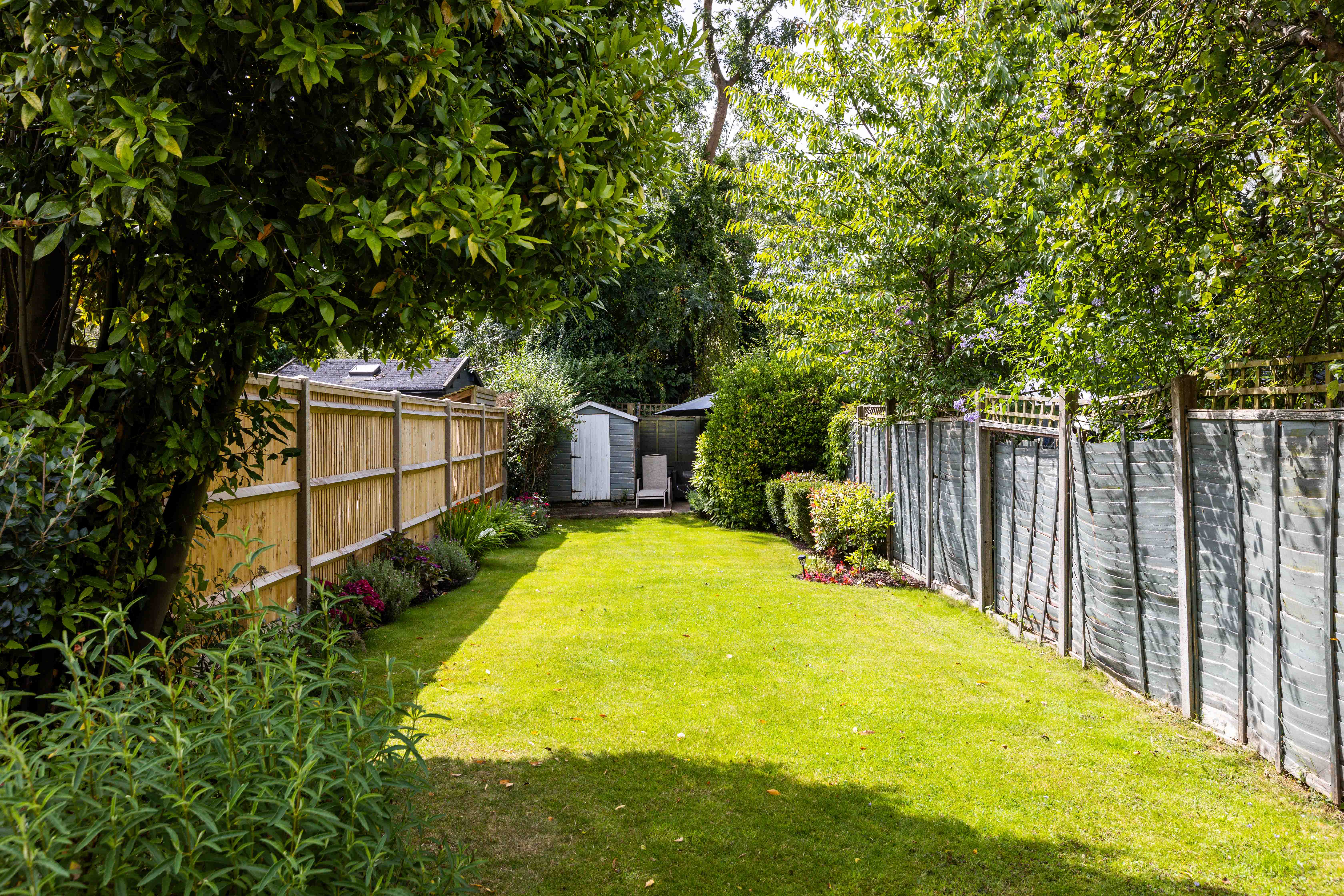 The garden, bathed in sunlight thanks to its south-facing orientation, is a true highlight of this property. A delightful patio area provides the perfect spot for barbecues and alfresco dining, while the expansive lawn offers plenty of space for children to play and explore. A second seating area at the rear of the garden offers a shaded retreat on those hot summer days.
