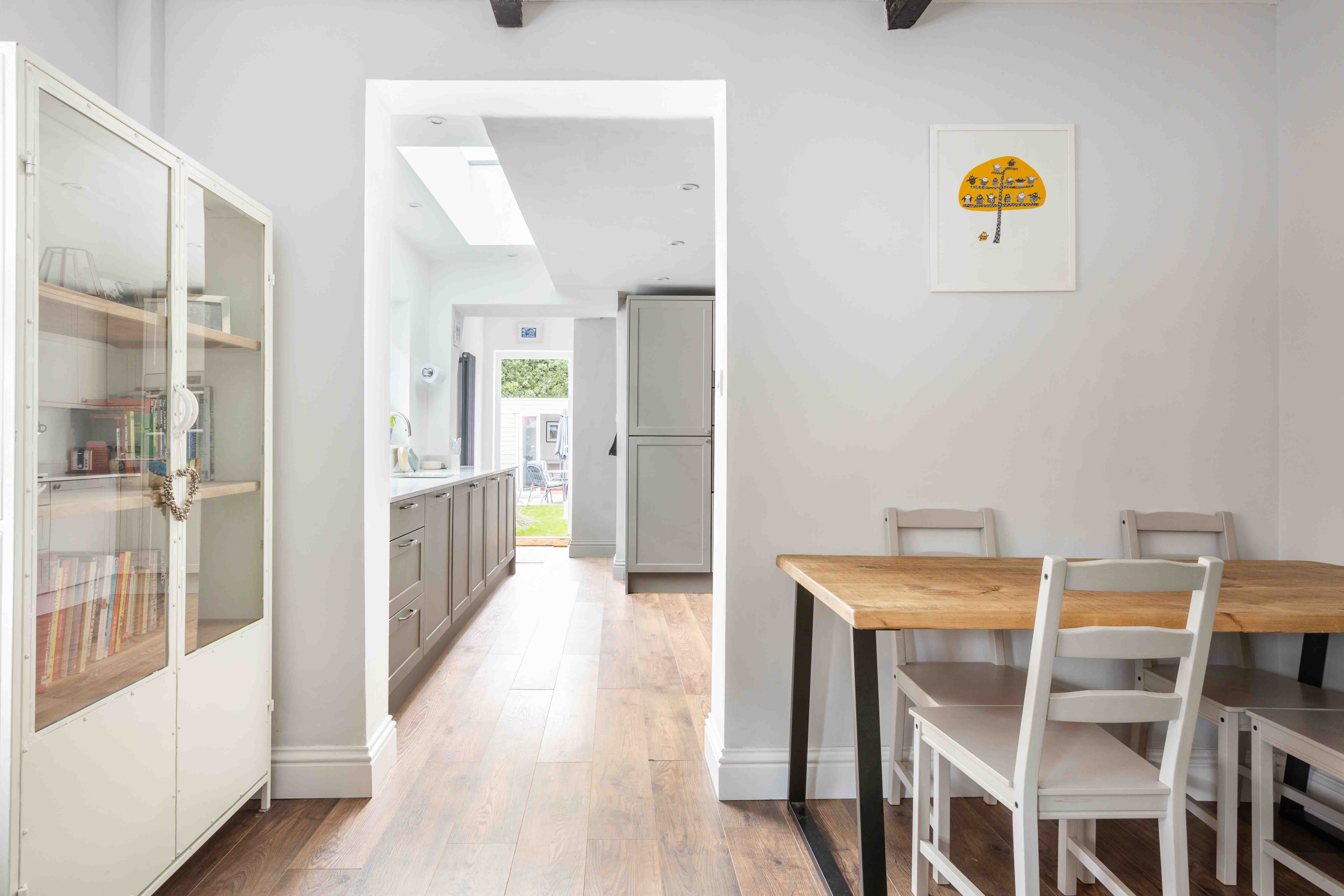 As you approach the property, you'll appreciate the convenience of a private driveway and the traditional side entrance, which welcomes you into a beautifully preserved reception room. This space, featuring exposed floorboards and a classic stairwell, exudes the timeless charm of Victorian architecture. To the front of the house, a cosy living room provides the ultimate snug, perfect for relaxation year-round. Whether you're cooling off in the summer months or curling up by the fireplace in winter, this room offers a serene retreat from the bustle of daily life. The heart of this home is its stunning extended kitchen at the rear. This modern space is designed for both functionality and style, complete with a downstairs WC and a utility area. Large windows and an open layout ensure the kitchen is bathed in natural light, making it an inviting space for both cooking and entertaining.