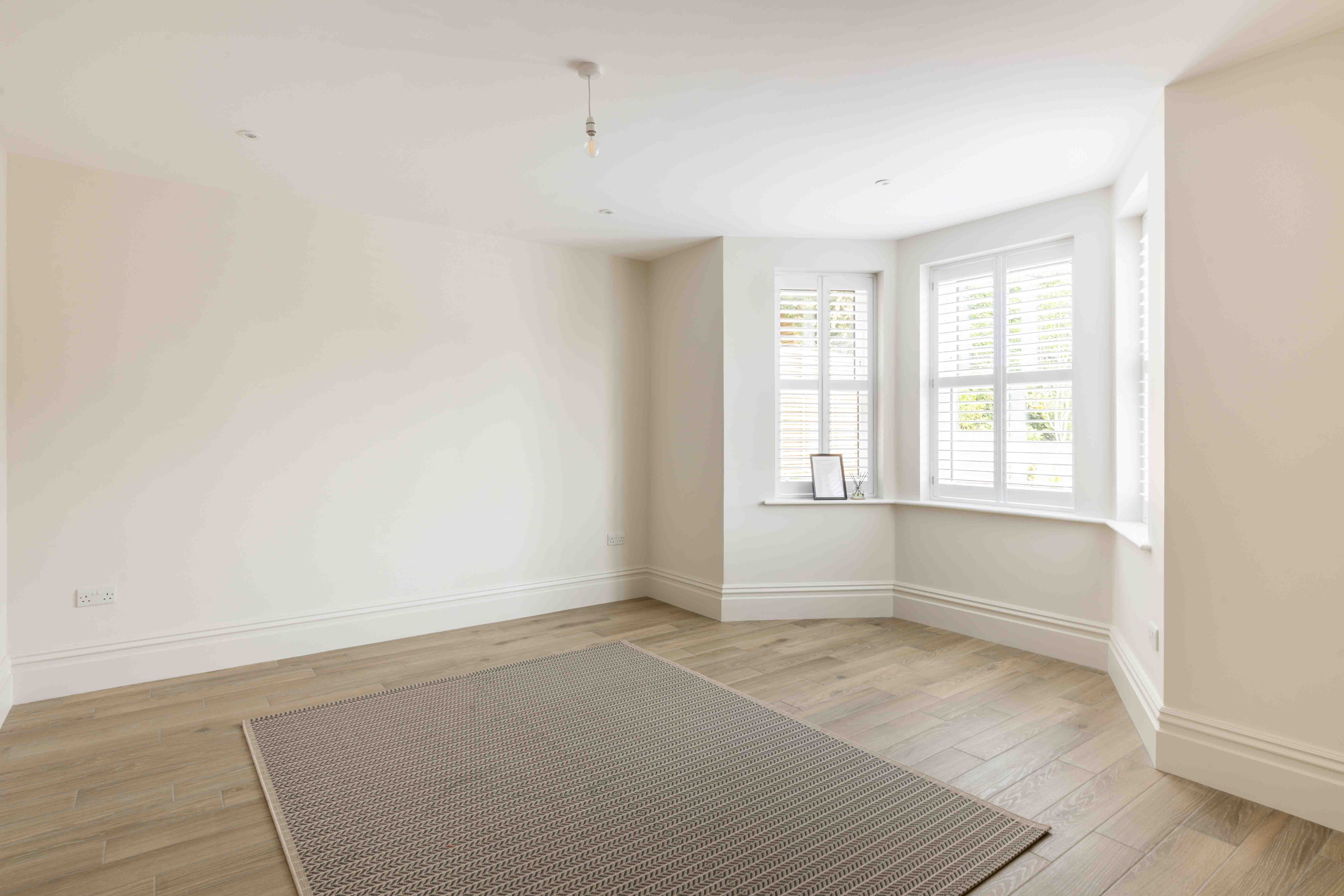 Spanning four beautifully finished levels, every inch has been considered for family life, stylish entertaining, and long-term comfort. The ground floor reception sets the tone: a welcoming bay-lit room with bespoke white wooden shutters, generous proportions, and porcelain wood-effect flooring warmed by individually zoned underfloor heating.