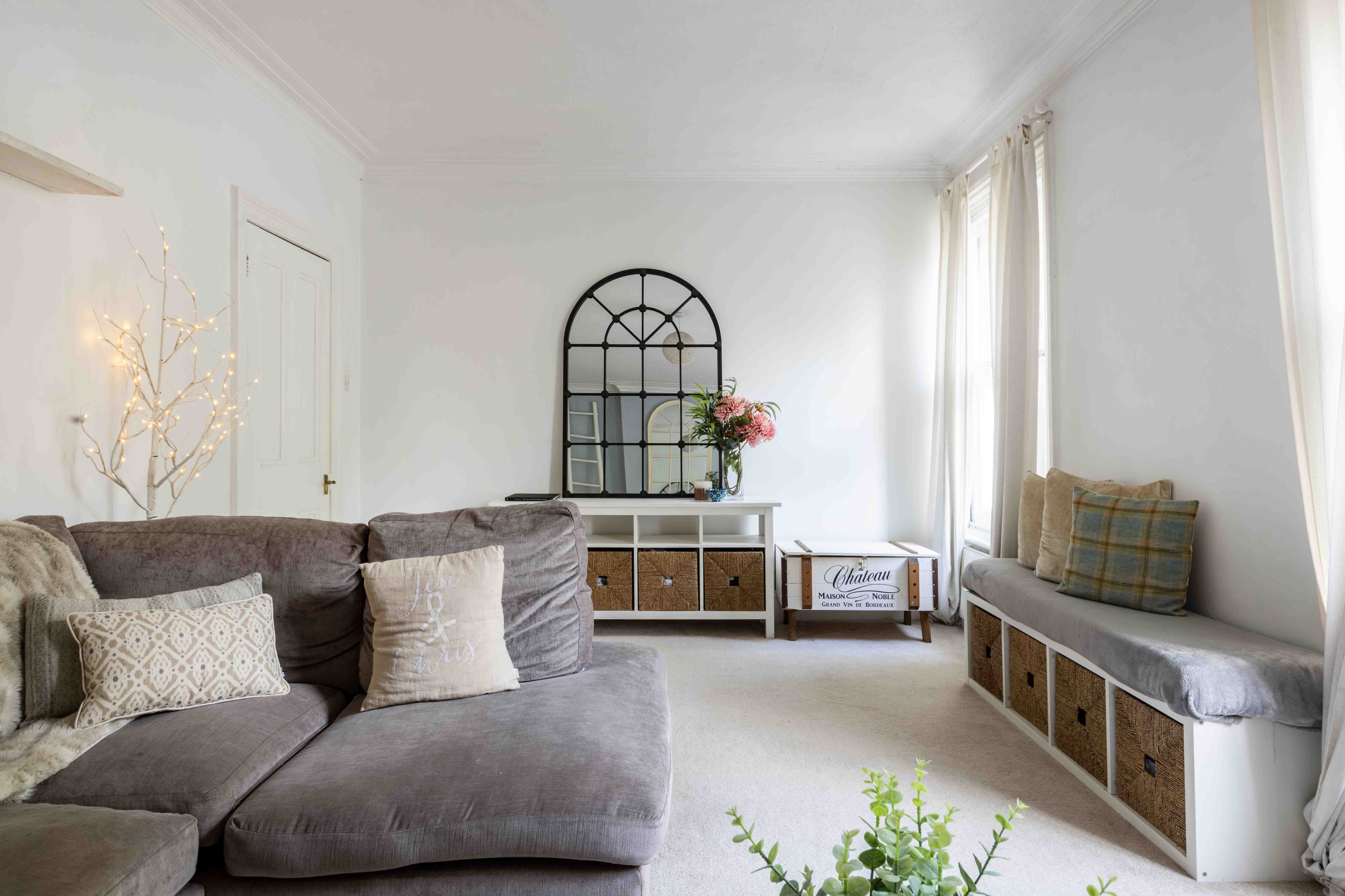 This spacious home spans the upper levels and is flooded with natural light. From the moment you step through the traditional front door, adorned with original stained glass, the property showcases an array of original features that add to its distinctive character. The tall ceilings create a sense of airiness, while the original sash windows frame views of the tree lined main road. The two large reception rooms, each featuring a period fireplace, offer a perfect balance of relaxation and entertaining space, and the separate kitchen, with ample space for modern living, adds practicality to the charm. Upstairs, two spacious double bedrooms are equally light-filled, with large windows that invite in plenty of sunlight. The property also includes a well-appointed bathroom and separate WC, with additional storage cupboards that make the home as functional as it is stylish.