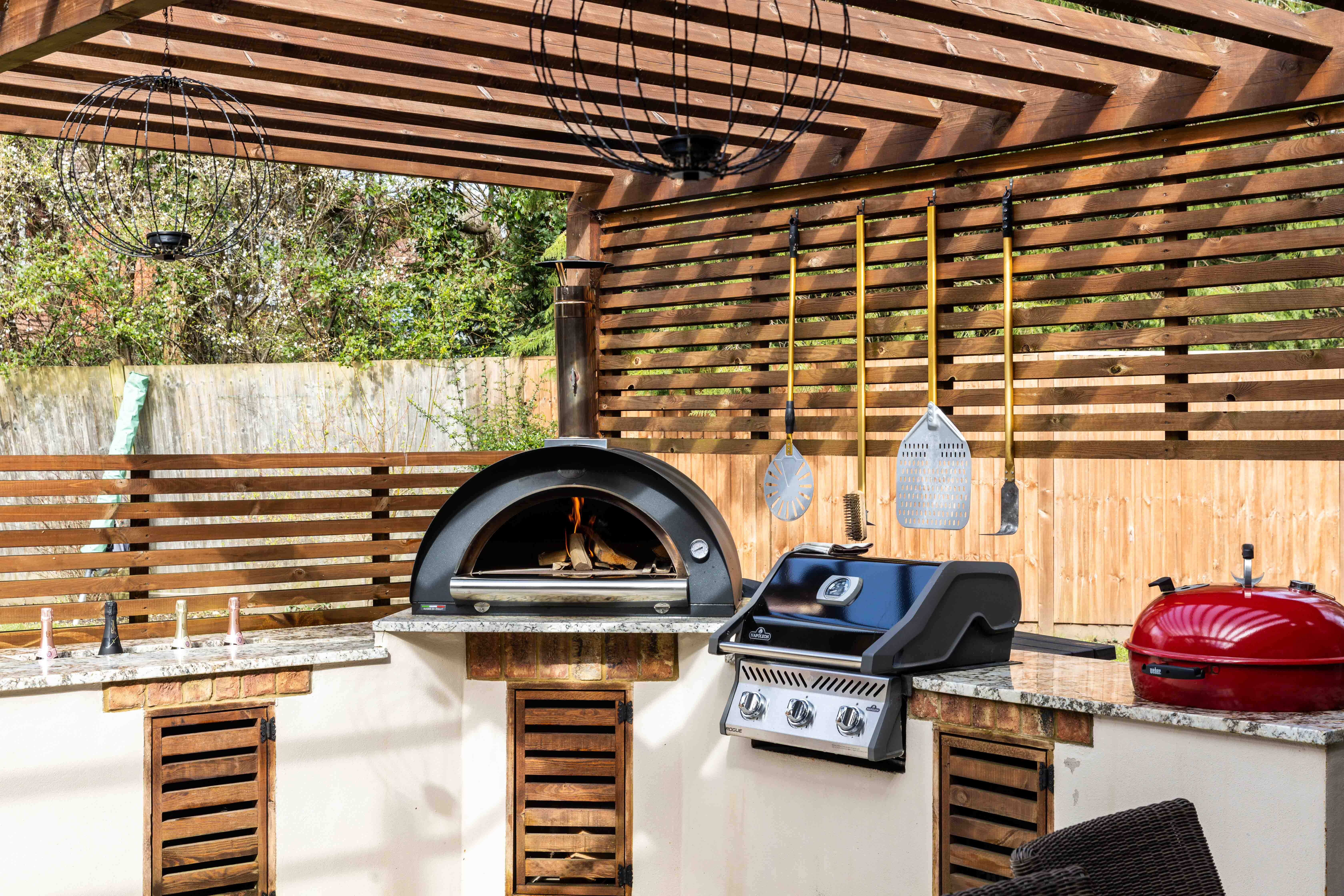 Outside, the large west-facing garden beckons for al fresco dining and leisurely evenings spent under the stars. A dining terrace, equipped with granite worktops for an outdoor kitchen, offers the perfect setting for summer gatherings. Completing this remarkable property is an outbuilding with flexible usage, currently serving as a gym but with the potential for conversion into an annexe or home office. Ample off-road parking on the driveway ensures convenience for residents and guests alike.