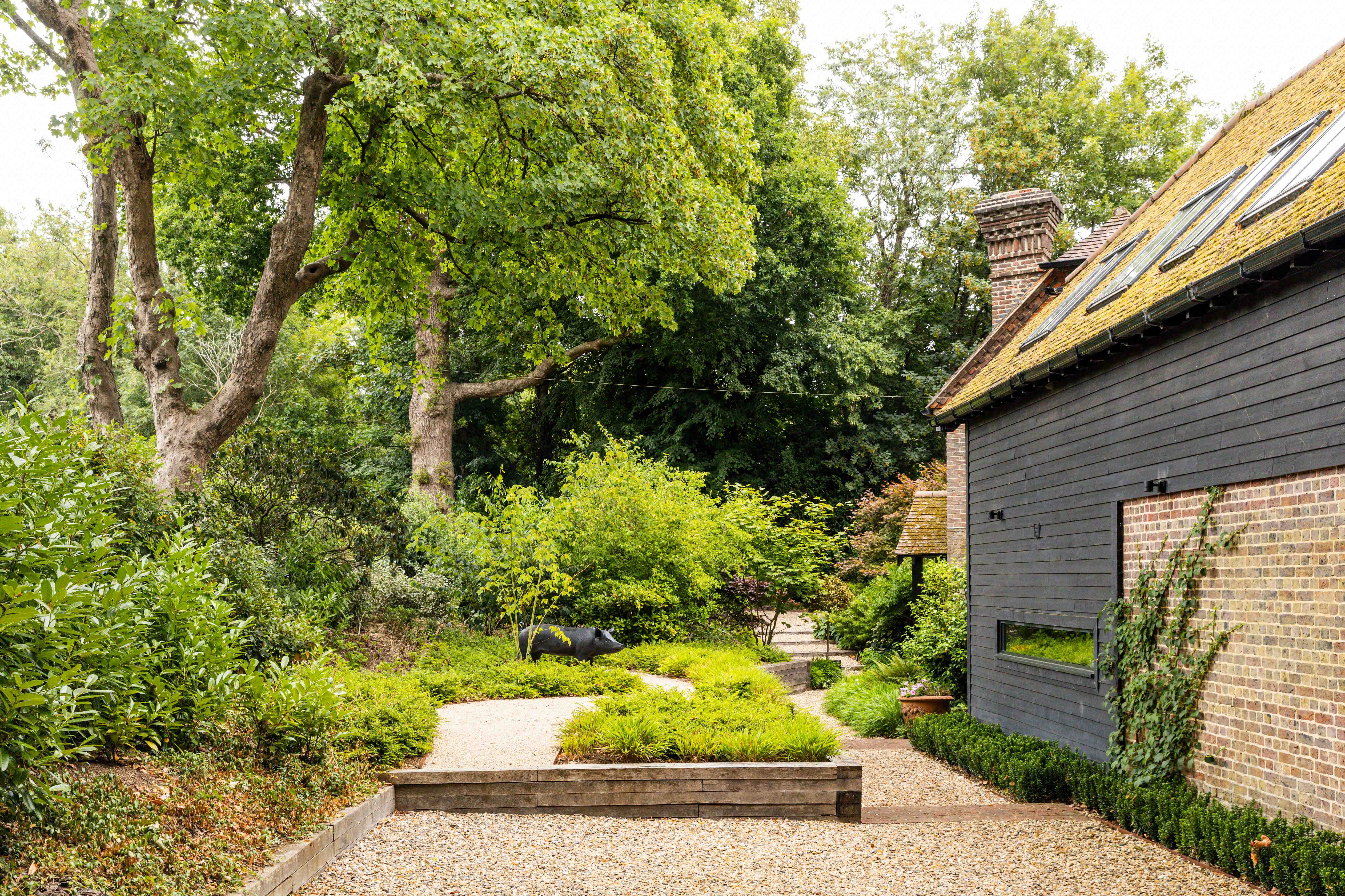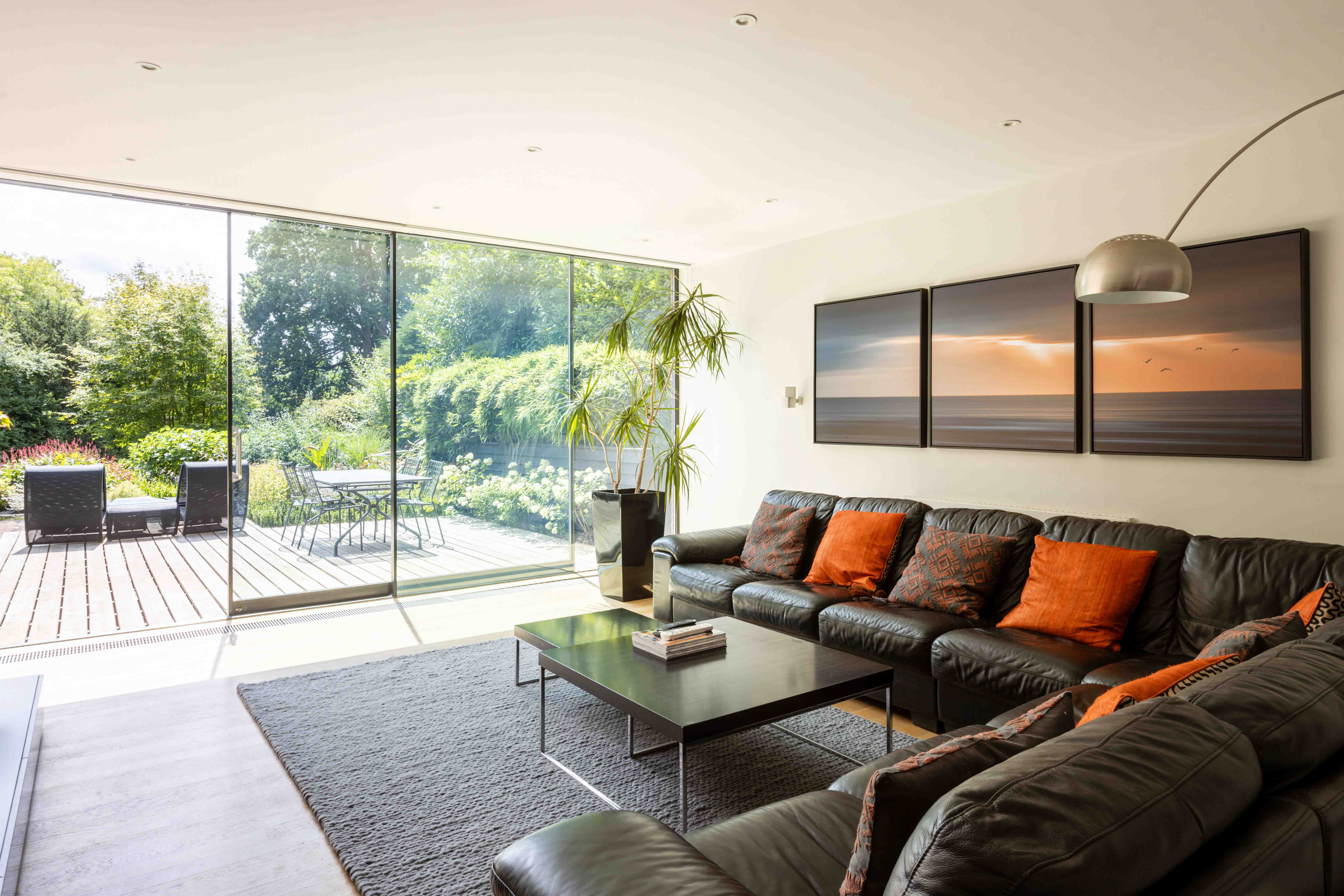 Sliding doors open onto the garden